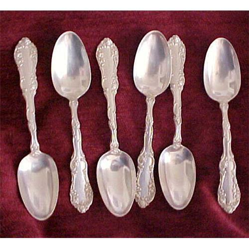 This is a set of 6 sterling spoons in the wonderful Old English pattern by Towle. This old fashioned and popular pattern features roses. These spoons are 5.5" long and engraved Louise. They are in extremely good condition and will cost $5 to ship to US addresses.