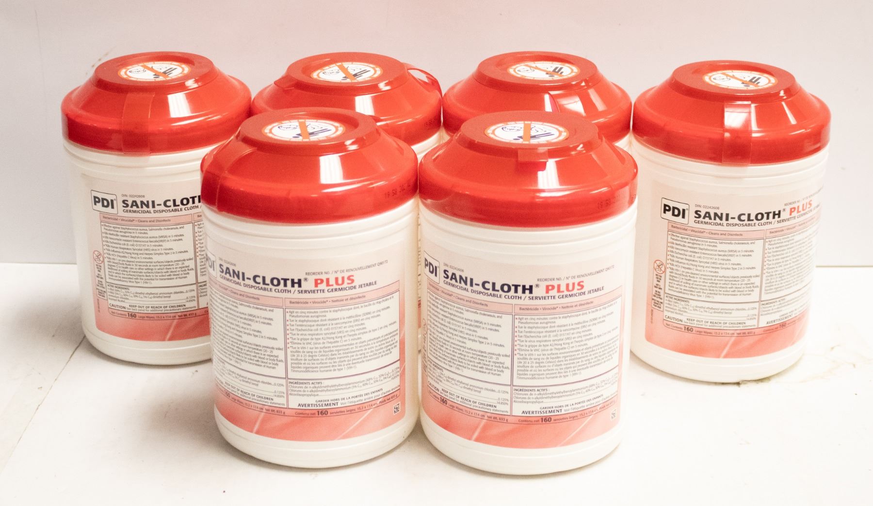 GERMICIDAL DISPOSABLE CLOTH. 6 X (160 LARGE WIPES; 15.2 X 17.4CM)