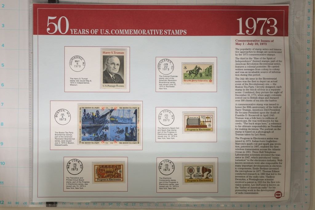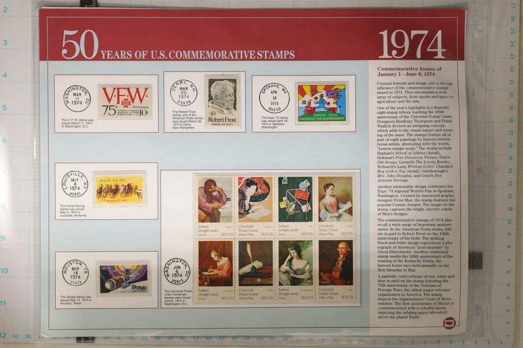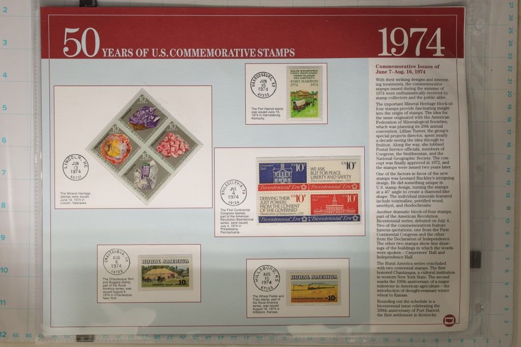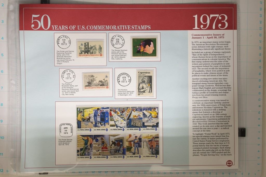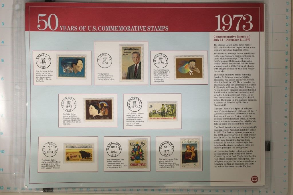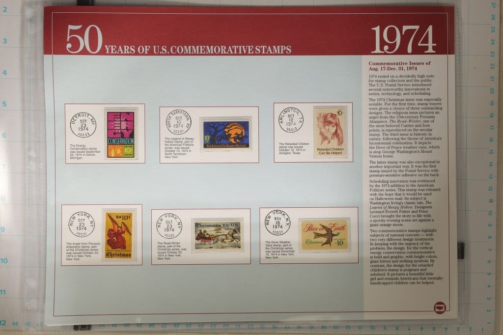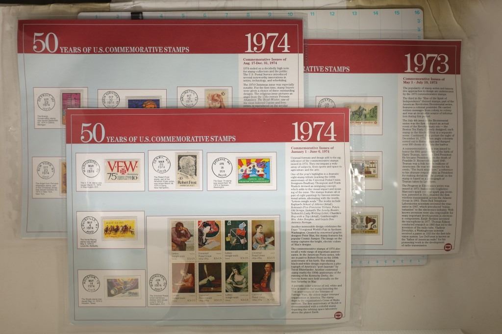 UNC AND UNCANCELLED: 3-PAGES OF 1973 AND 3-PAGES OF 1974. ALL ON LARGE INFO CARDS WITH TWO PAGES IN PLASTIC SLEEVES EACH. $5.53 TOATAL POSTAGE.