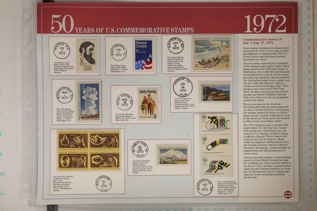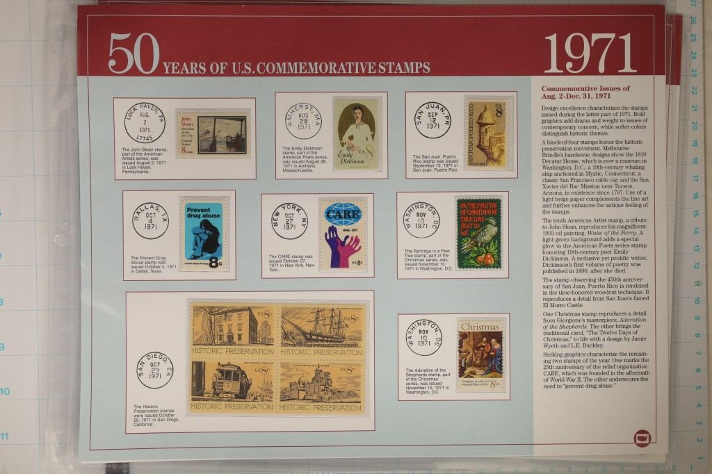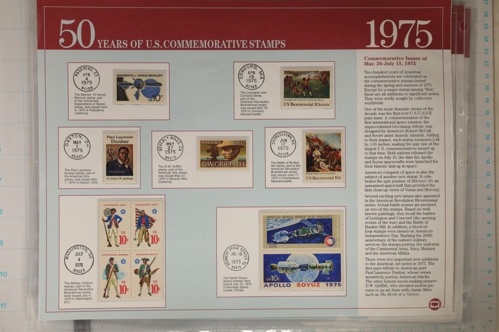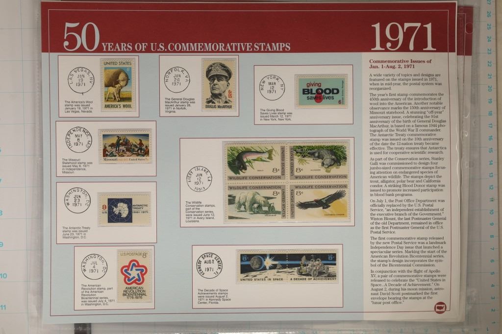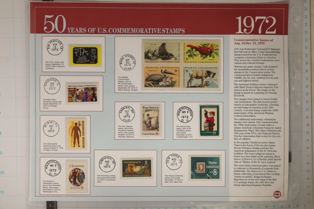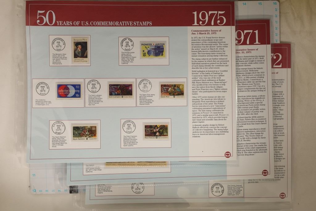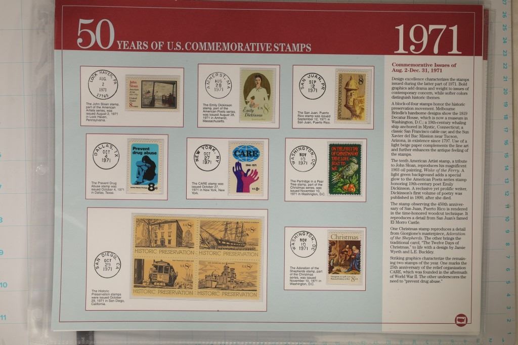 INFO CARDS: 67 STAMPS. INCLUDES ONE 2 CENT, SEVEN 6 CENT, FORTY-ONE 8 CENT, SIXTEEN 10 CENT, ONE 15 CENT AND ONE 18 CENT. APPROX $5.65 POSTAGE. ALL ARE IN PLASTIC SLEEVES