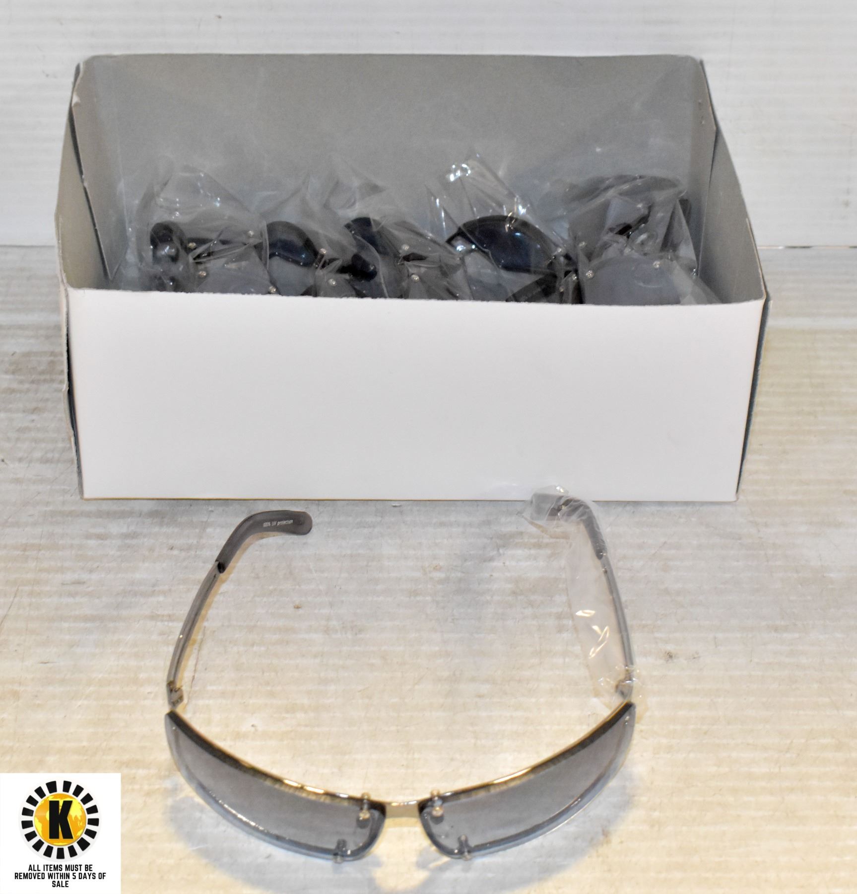 6 PAIRS OF BLACK WITH BLUE LENS SLEEK ITALIAN STYLED SUNGLASSES. ALL ITEMS MUST BE REMOVED WITHIN 5 DAYS OF SALE