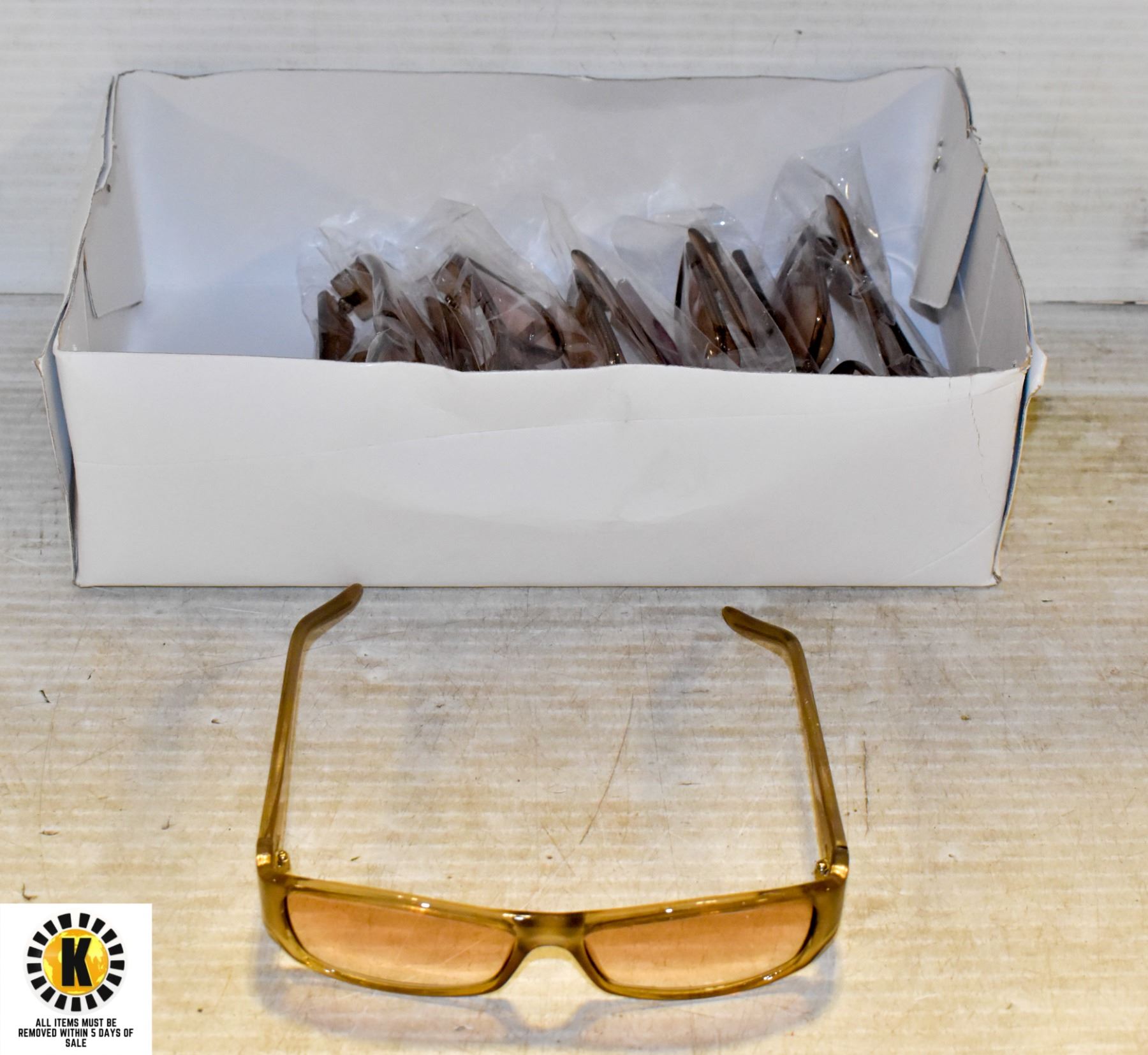 6 PAIRS OF BROWN MODERN SUNGLASSES. ALL ITEMS MUST BE REMOVED WITHIN 5 DAYS OF SALE