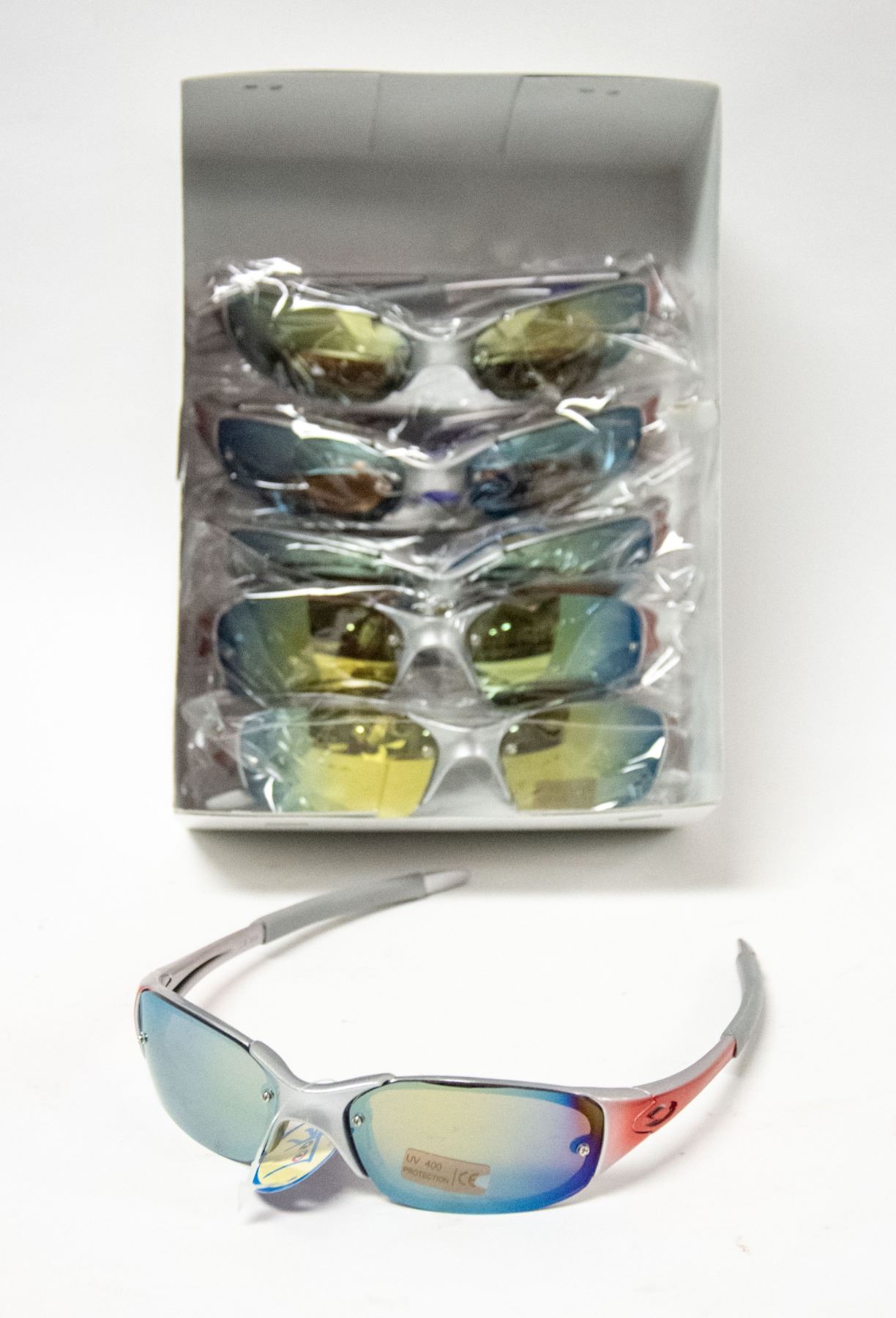 6 PAIRS OF GREY AND RED SPORT SUNGLASSES
