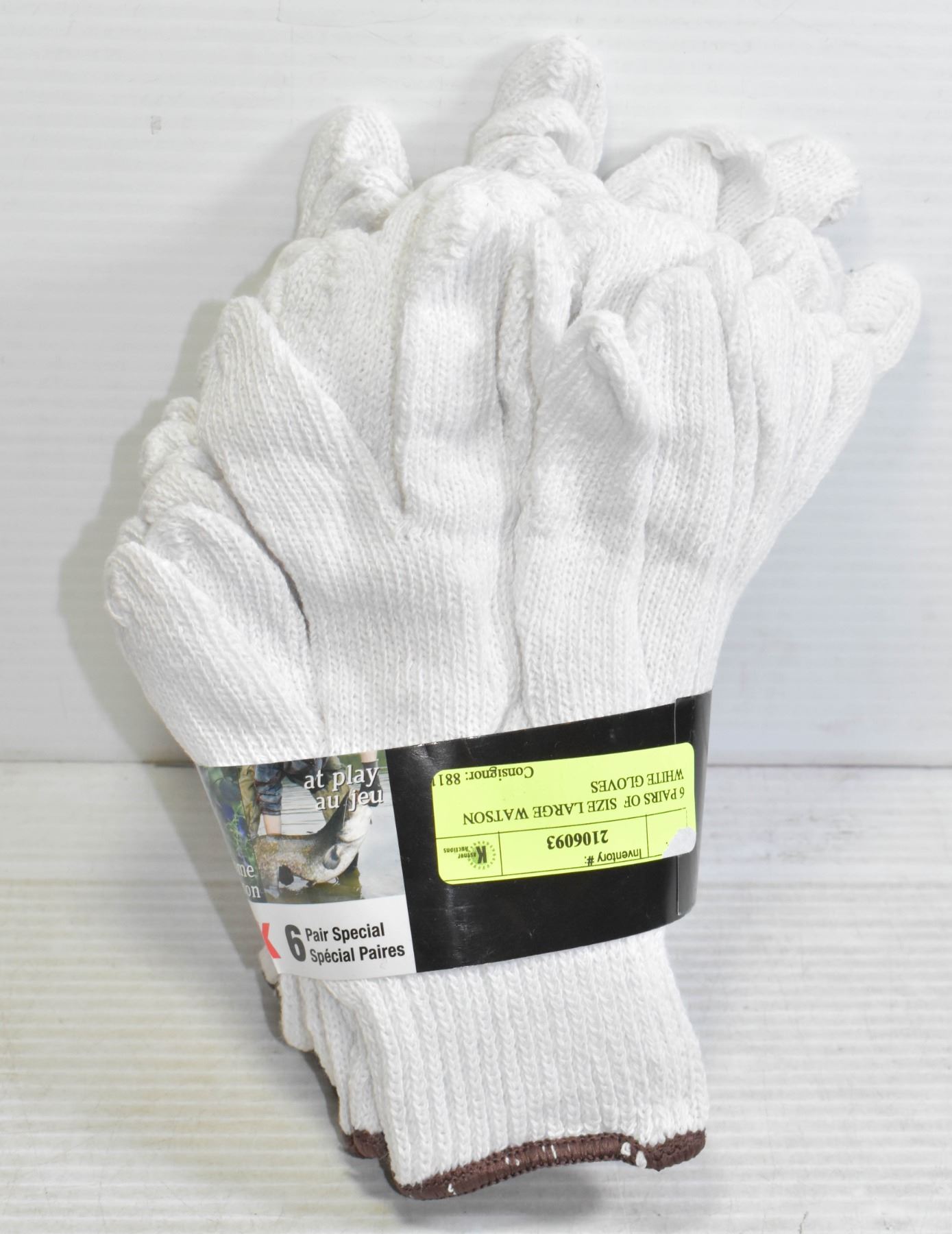 6 PAIRS OF SIZE LARGE WATSON WHITE GLOVES