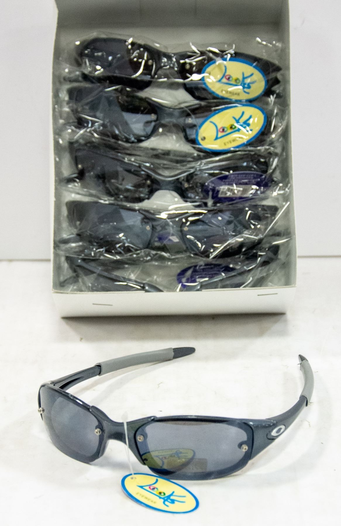 6 PAIRS OF TWO-TONE GREY OAKLEY REPLICA SUNGLASSES