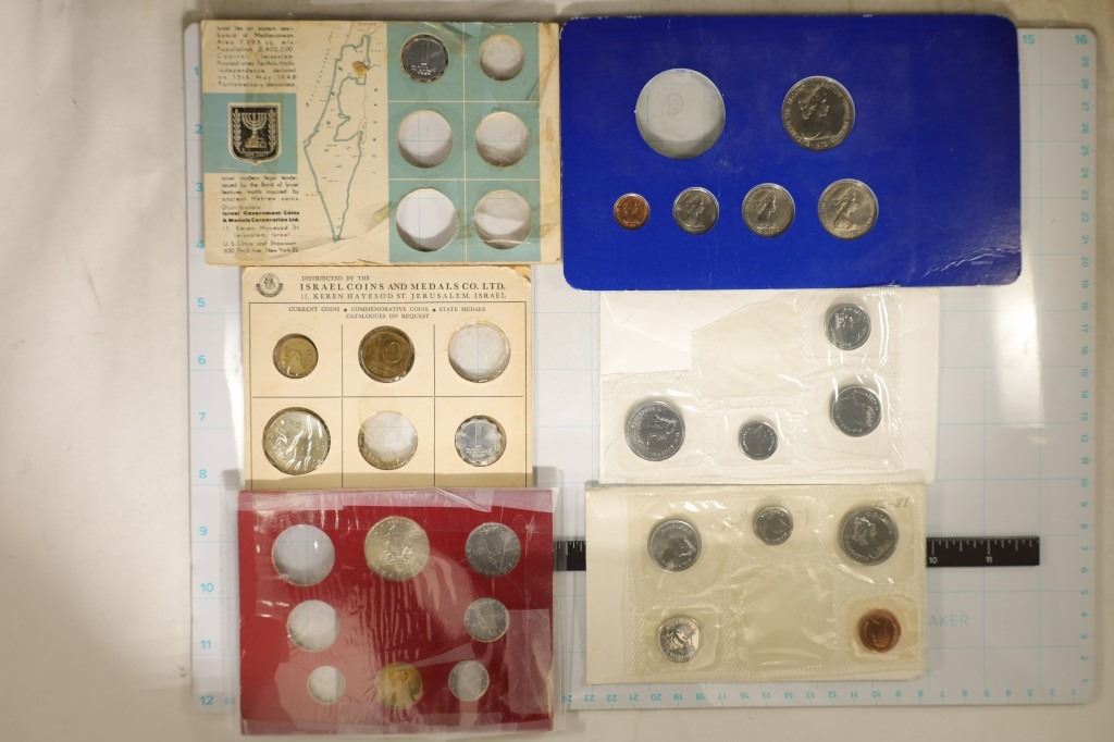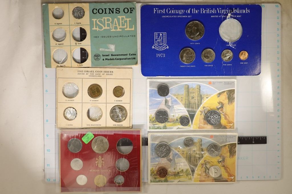 THE 500 LIRE IS .2935 OZ. ASW (MISSING 3 COINS), 1963 ISRAEL UNC SET WITH 4 COINS (MISSING 2), 1963 ISRAEL UNC SET 1 COIN (MISSING 5), 1981 CANADA (PF LIKE) SET WITH 5 COINS (MISSING 1) WITH ENVELOPE, 1981 CANADA