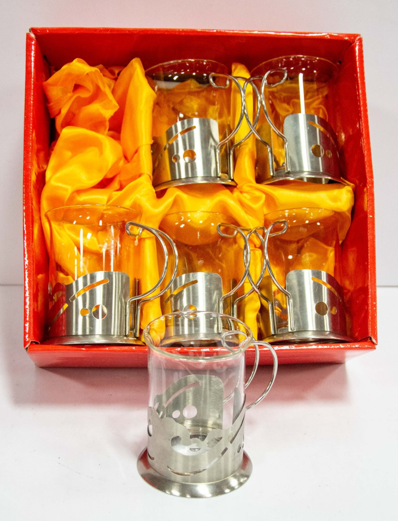STAINLESS STEEL BASE WITH GLASS CUP INSERTS