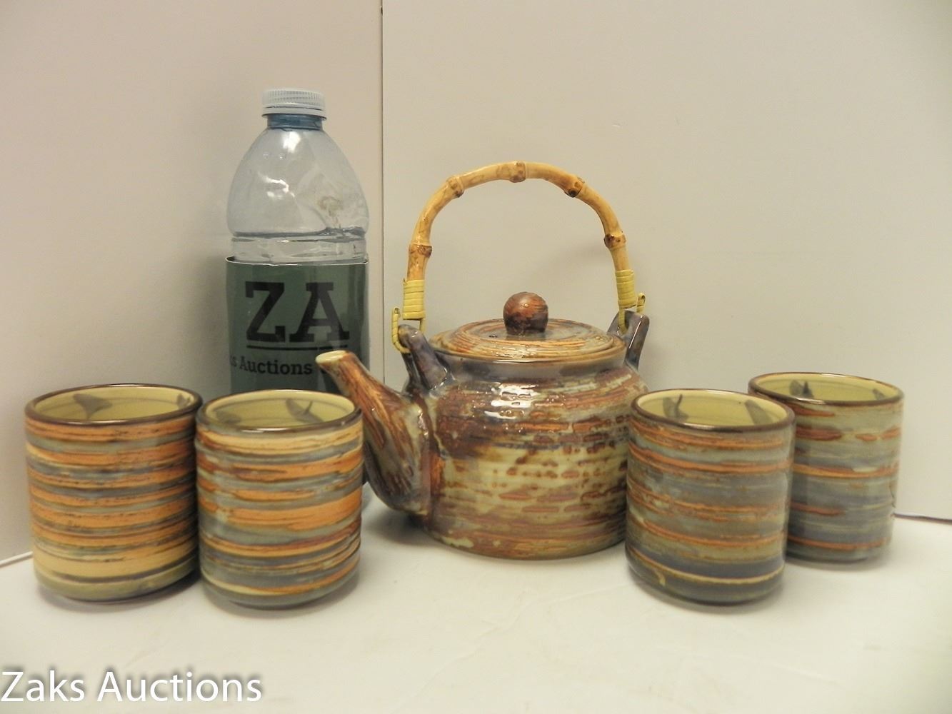 6 PC VINTAGE GLAZED POTTERY TEA POT SET