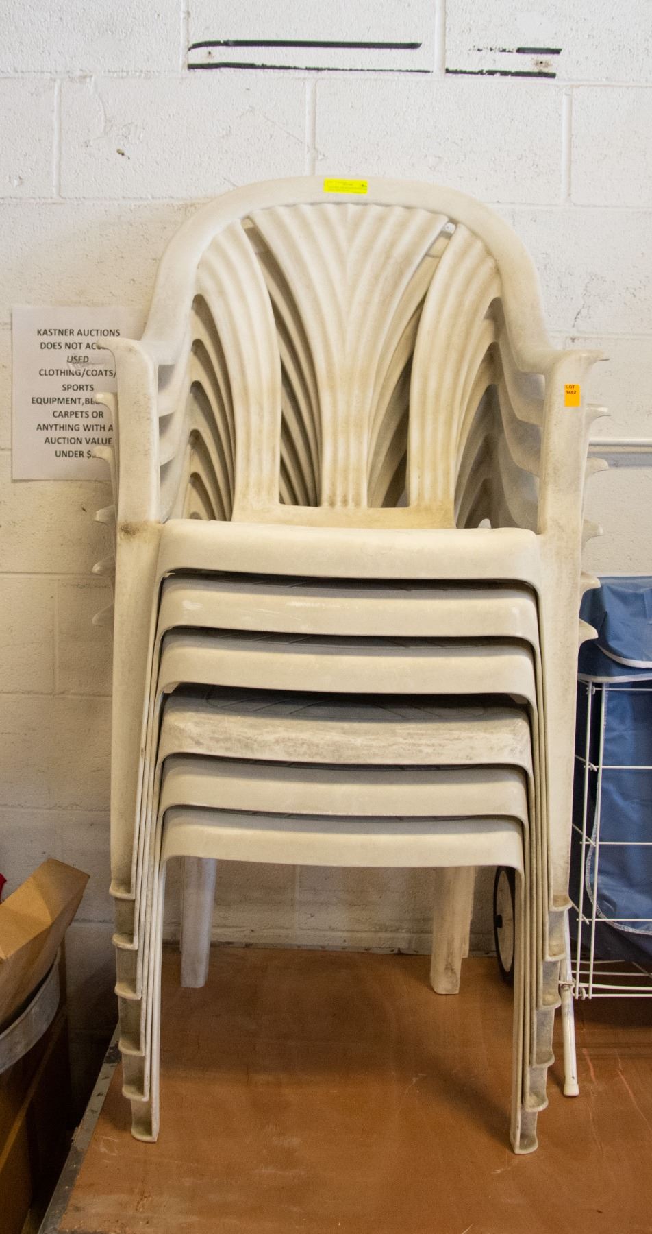 6 PCS POLYPROPYLENE PATIO HIGH BACK ARM CHAIRS **ALL ITEMS MUST BE REMOVED BY 5PM FRIDAY, SEPTEMBER 2ND, 2022. ALL REMAINING ITEMS WILL BE SUBJECT TO A $6.00 PER DAY STORAGE CHARGE. ANY ITEMS REMAINING AFTER FRIDAY, SEPTEMBER 2, 2022 WILL BE CONSIDERED FORFEITED. NO REFUNDS WILL BE ISSUED FOR FORFEITED ITEMS.** TO SCHEDULE A PICK UP APPOINTMENT. CLICK HERE