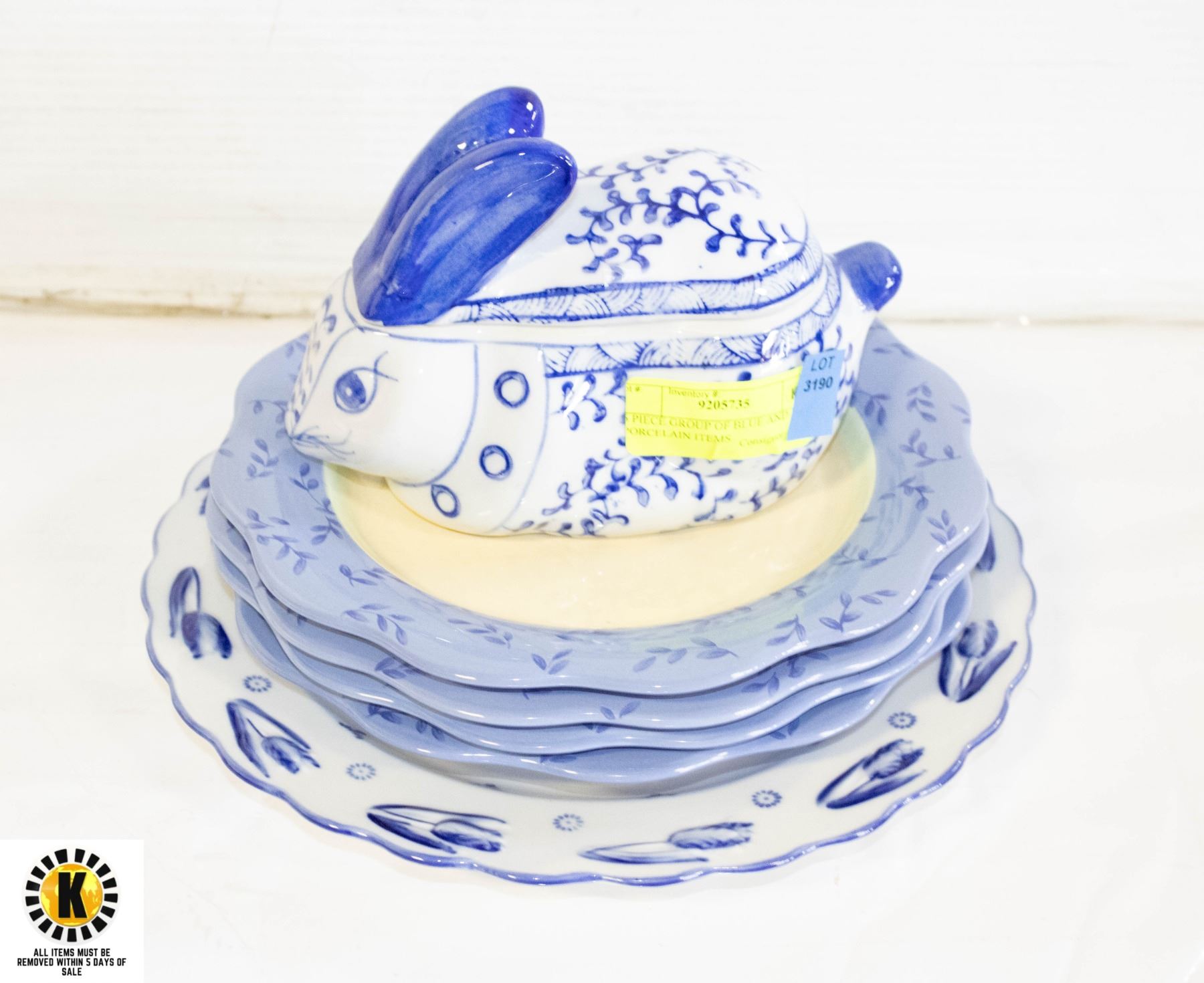 6 PIECE GROUP OF BLUE AND WHITE PORCELAIN ITEMS
