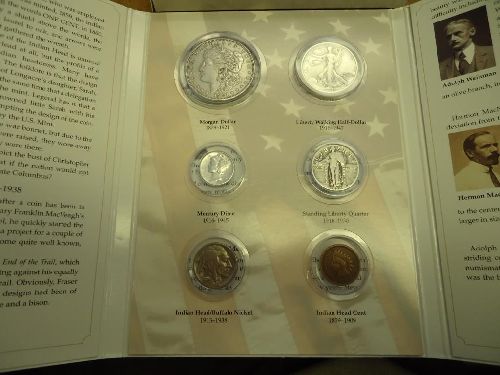 1905 INDIAN HEAD CENT, 1937 BUFFALO NICKEL, 1941 MERCURY DIME, 1929-D STANDING LIBERTY QUARTER, 1943-D WALKING LIBERTY HALF DOLLAR & 1921-D MORGAN SILVER DOLLAR