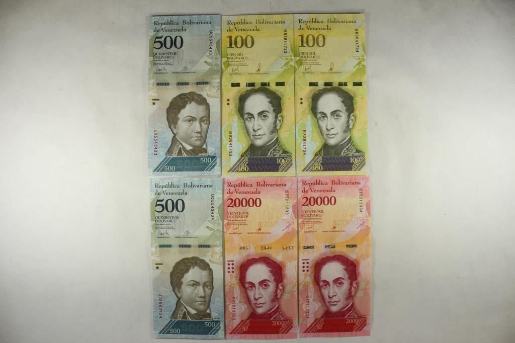 2-100 BOLIVARES, 2-500 BOLIVARES AND 2-20,000 BOLIVARES. EACH DENOMINATION ARE CONSECUTIVE SERIAL NUMBERS