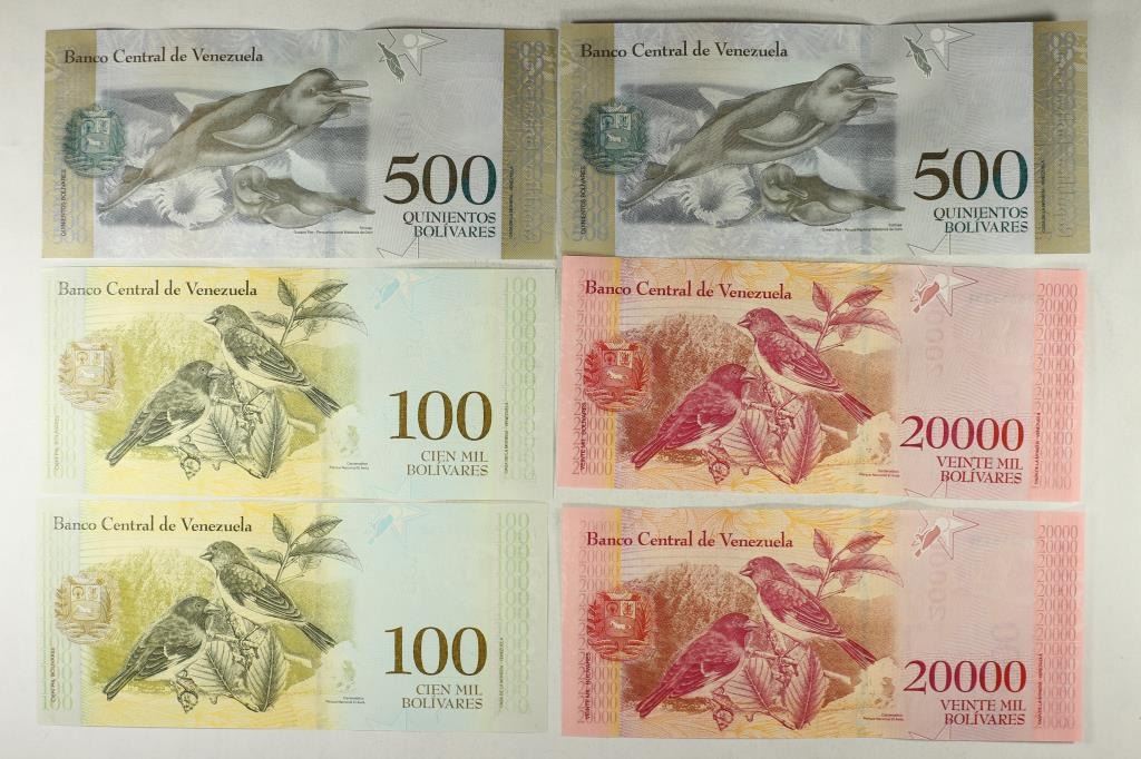 2-100 BOLIVARES, 2-500 BOLIVARES AND 2-20,000 BOLIVARES. EACH DENOMINATION ARE CONSECUTIVE SERIAL NUMBERS