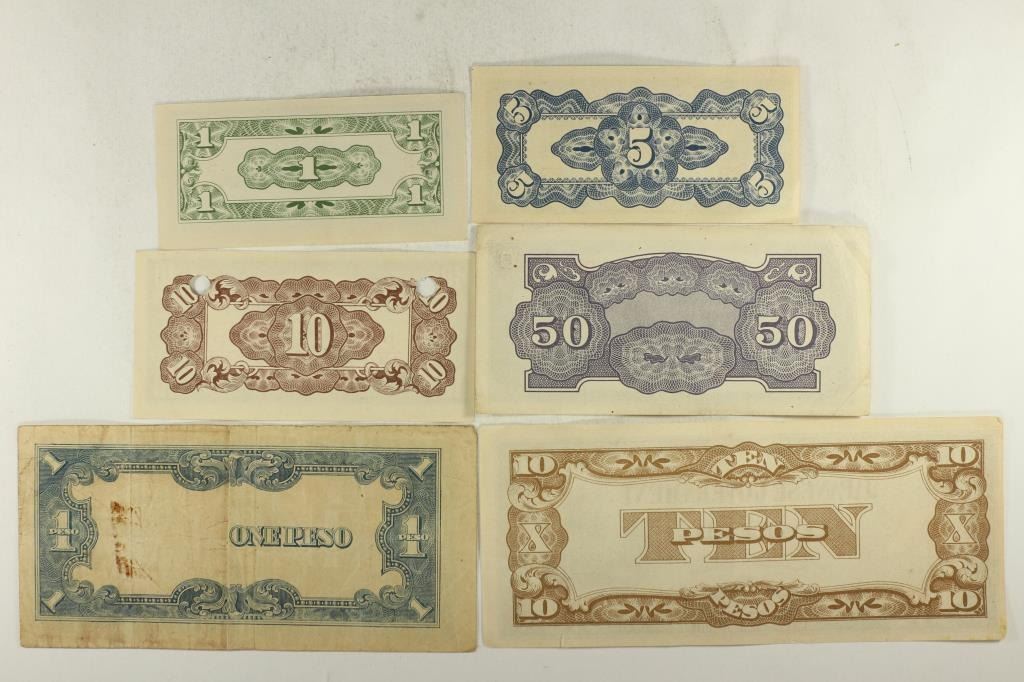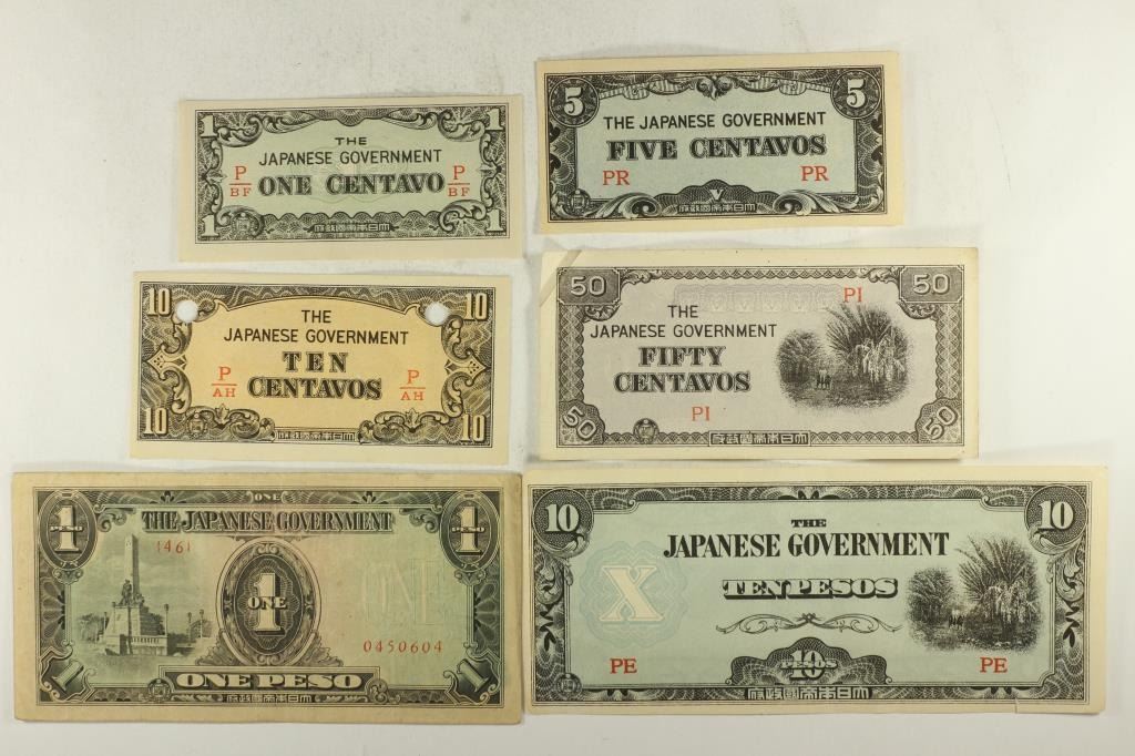 INVASION CURRENCY, 1 CENTAVO, 5 CENTAVOS, 10 CENTAVOS, 50 CENTAVOS, 1 PESO AND 10 PESOS