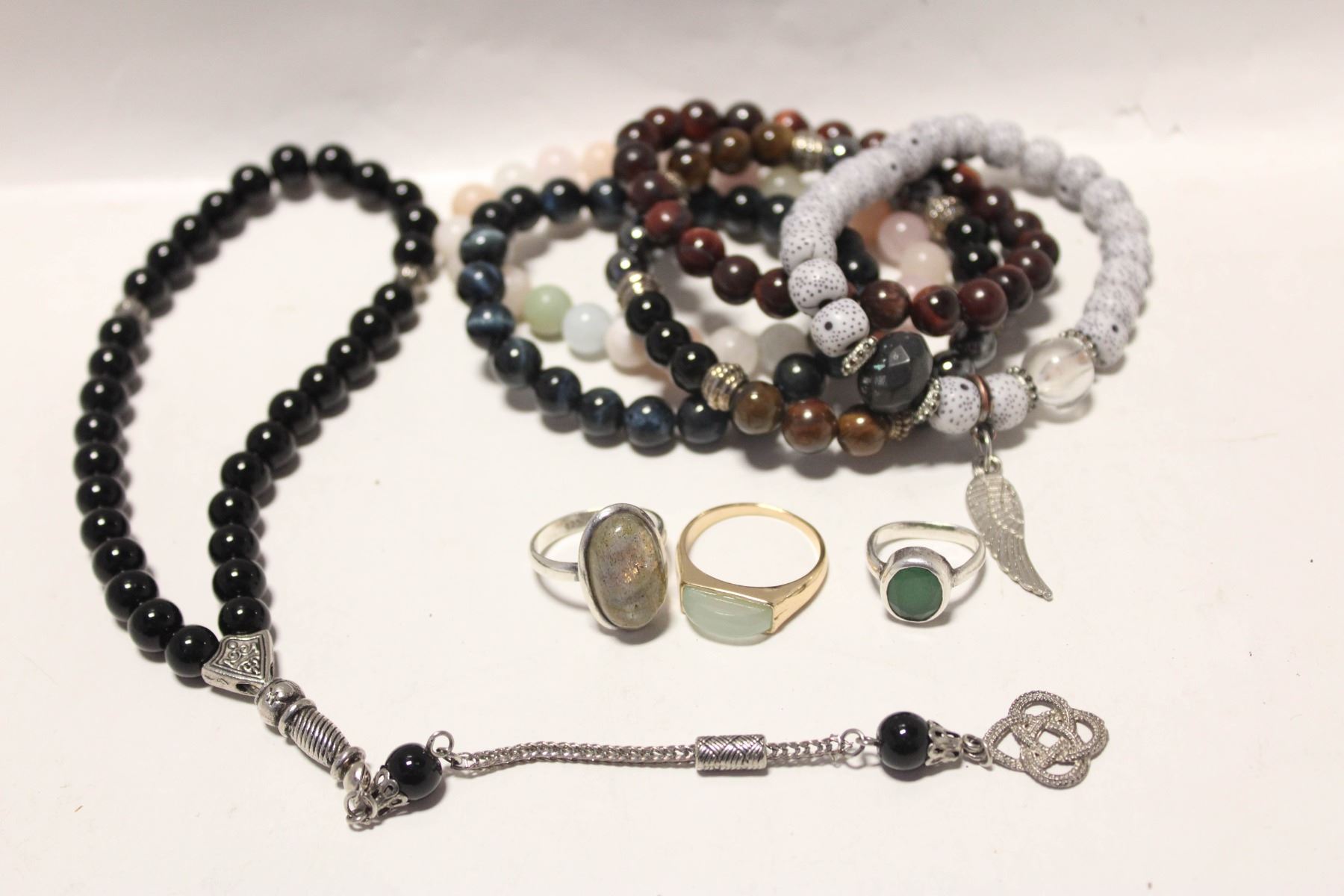 BRACELETS + 3 GEMSTONE RINGS SIZES 2, 7.5 & 9.5