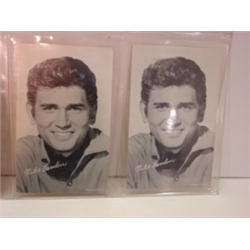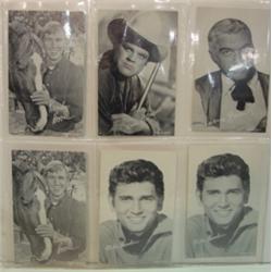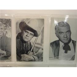 6 postcards of Bonanza television stars. Consists of Randy Boone (2), Dan Blocker, Lorne Greene, and Michael Landon (2).