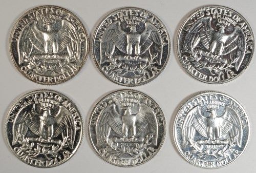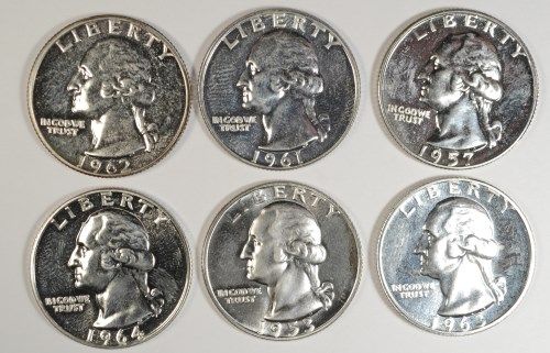 6 PROOF WASHINGTON QUARTERS (53,57,61,62,63,64)