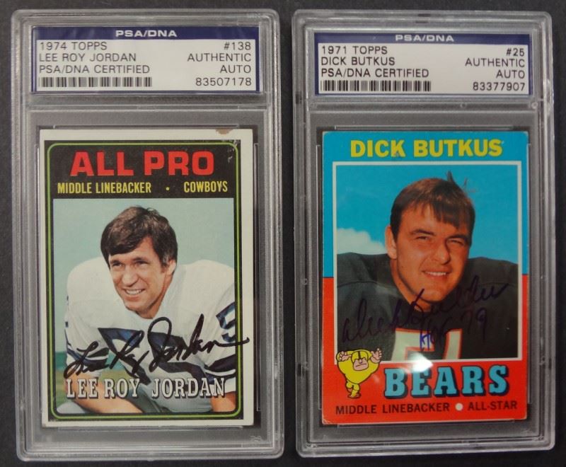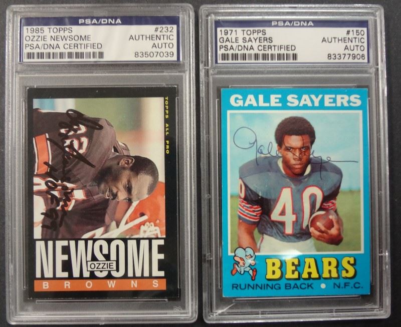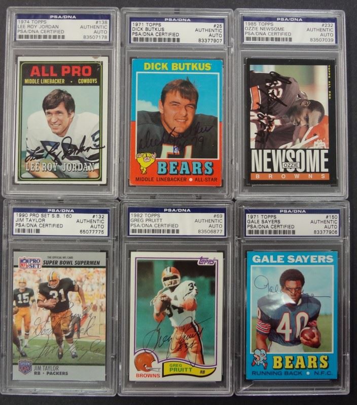 6 - PSA / DNA AUTOGRAPHED FOOTBALL CARDS - GALE SAYERS,DICK BUTKUS,OZZIE NEWSOME