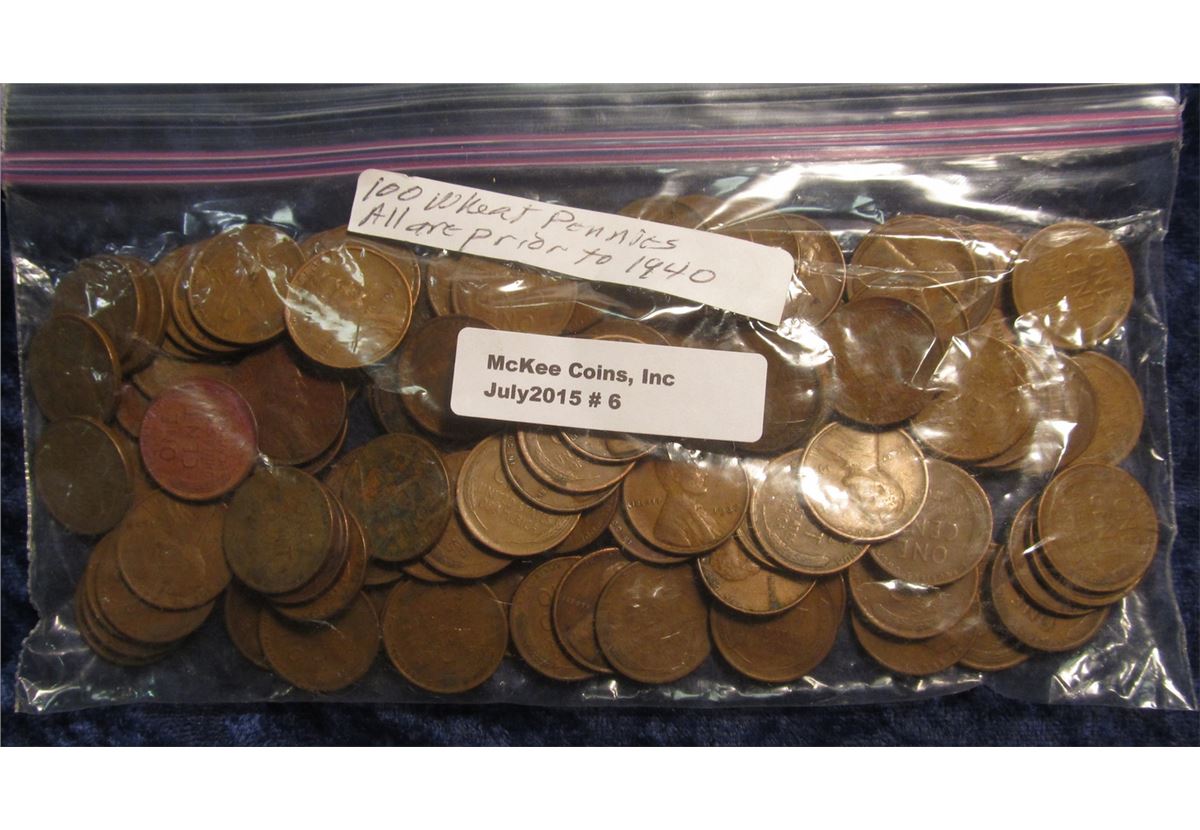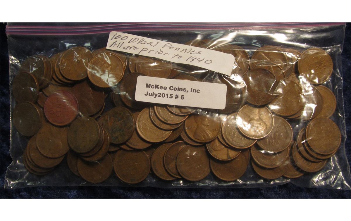 6. Pack of 100 Wheat Cents. All dated prior to 1940.