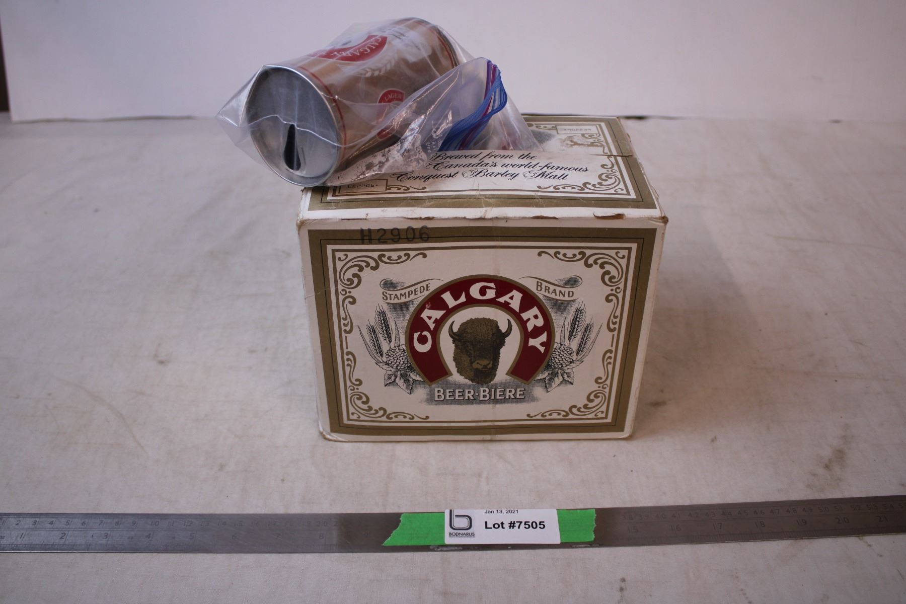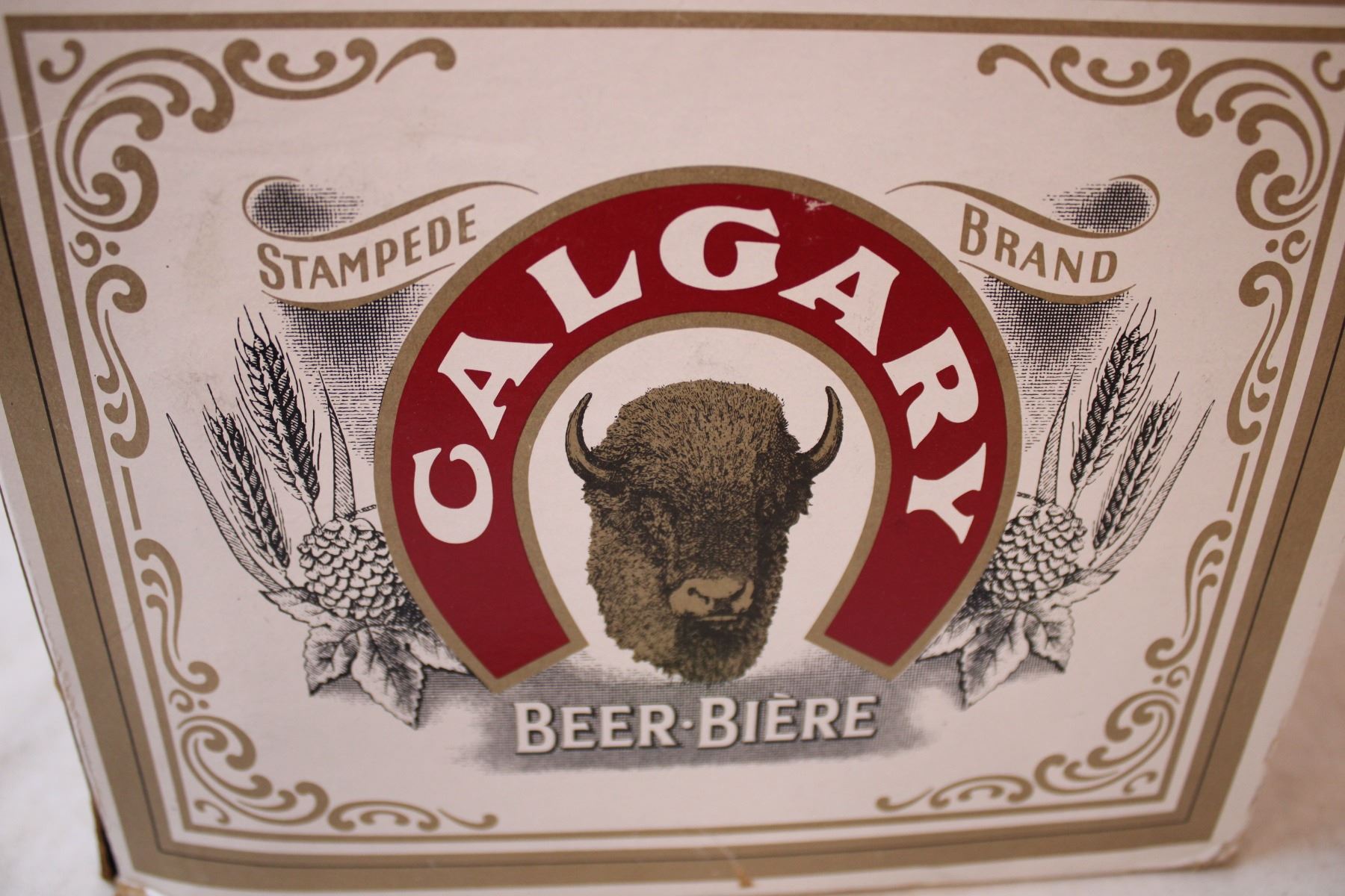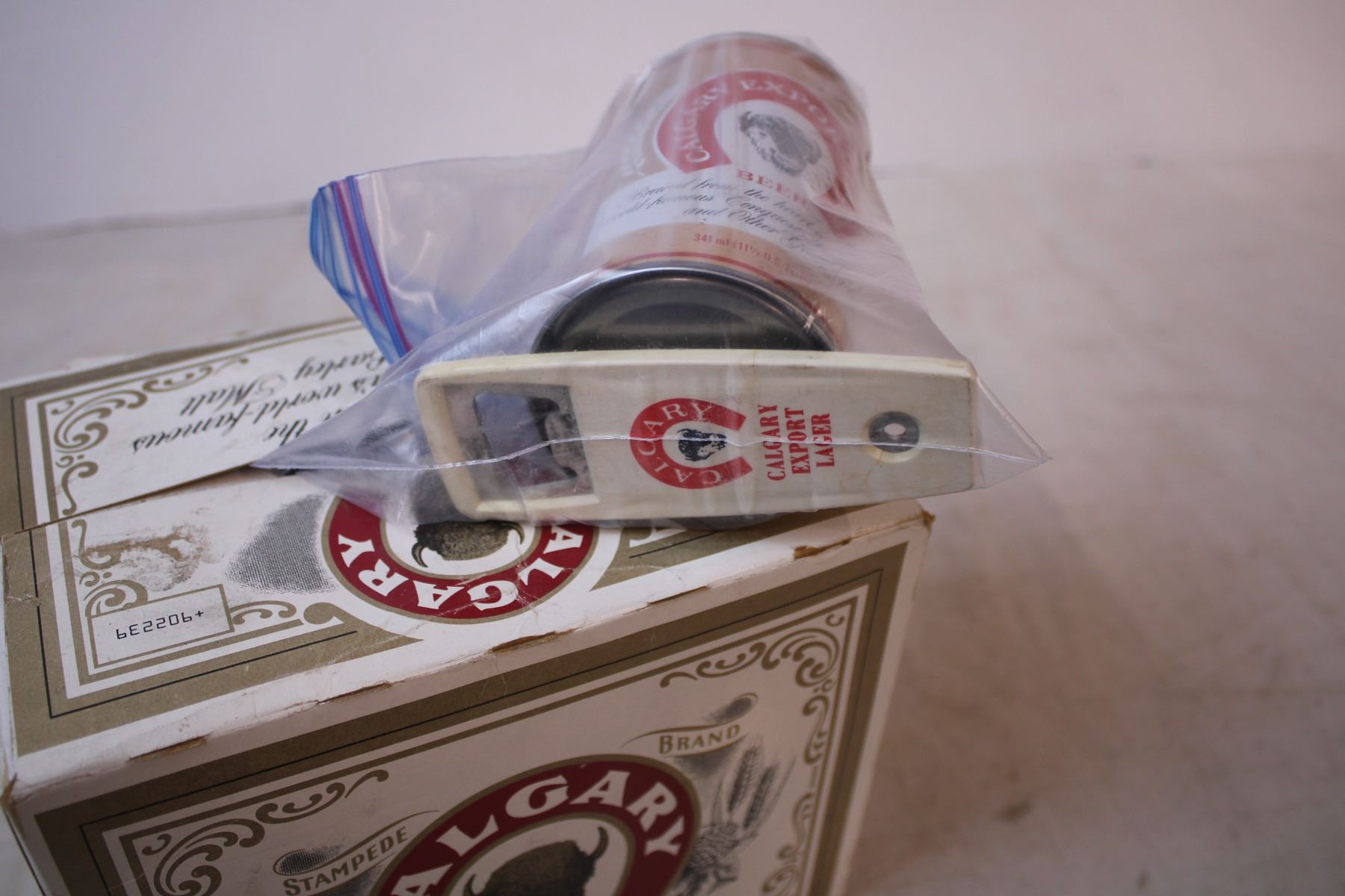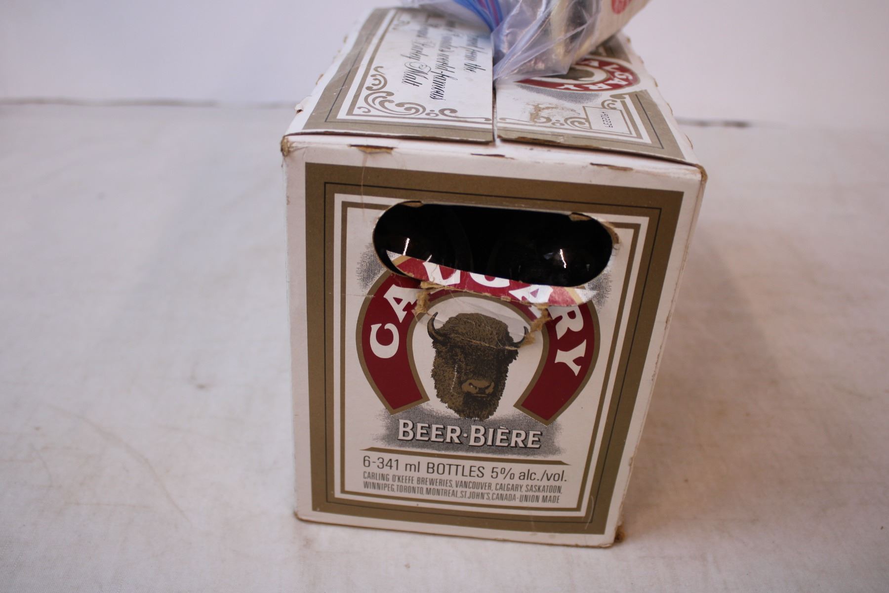 6 Pack of Calgary Beer Bottles - Sealed/Full,opener Beer can