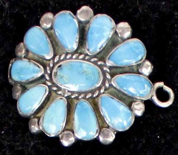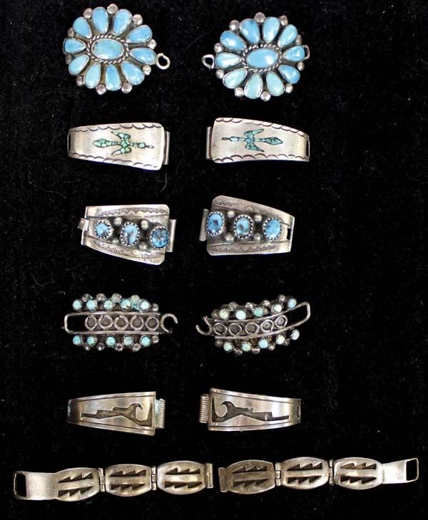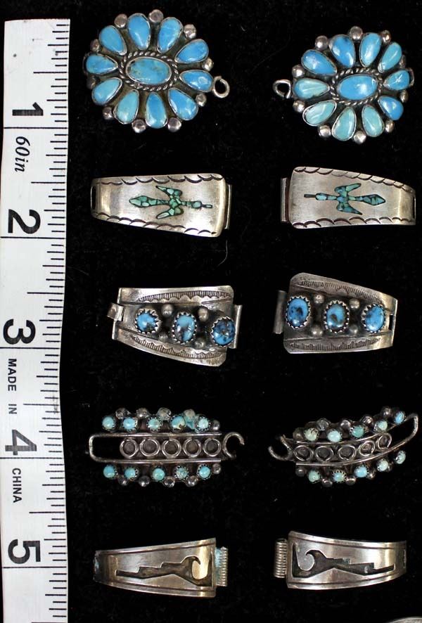 6 Pairs of Native American Zuni and Navajo Sterling Silver and Turquoise Ladies Watch Band Tips. this large selection of tips Includes segmented set that measures 2 1/2'' x 1/2''.