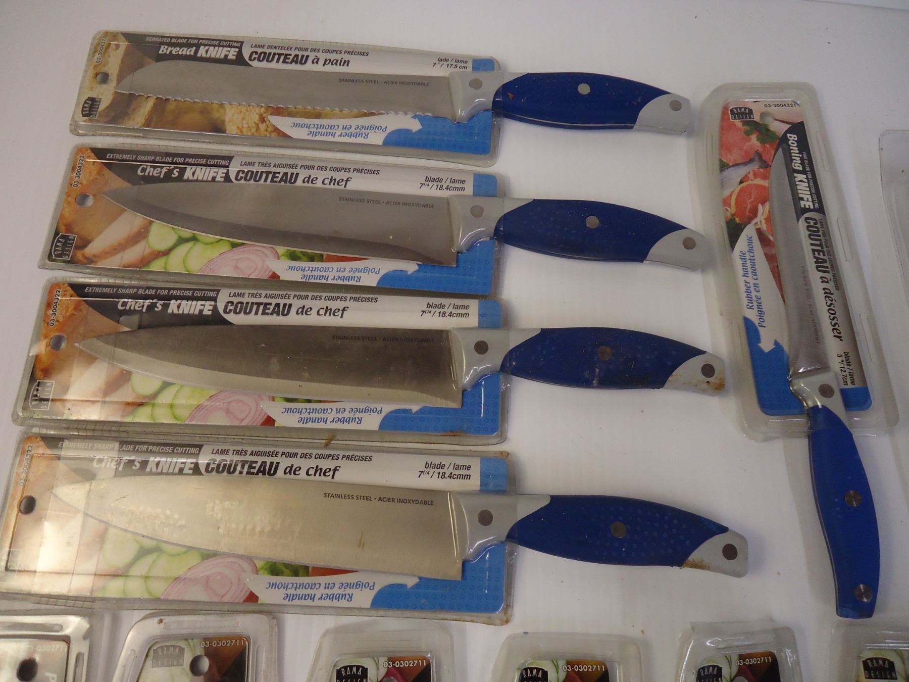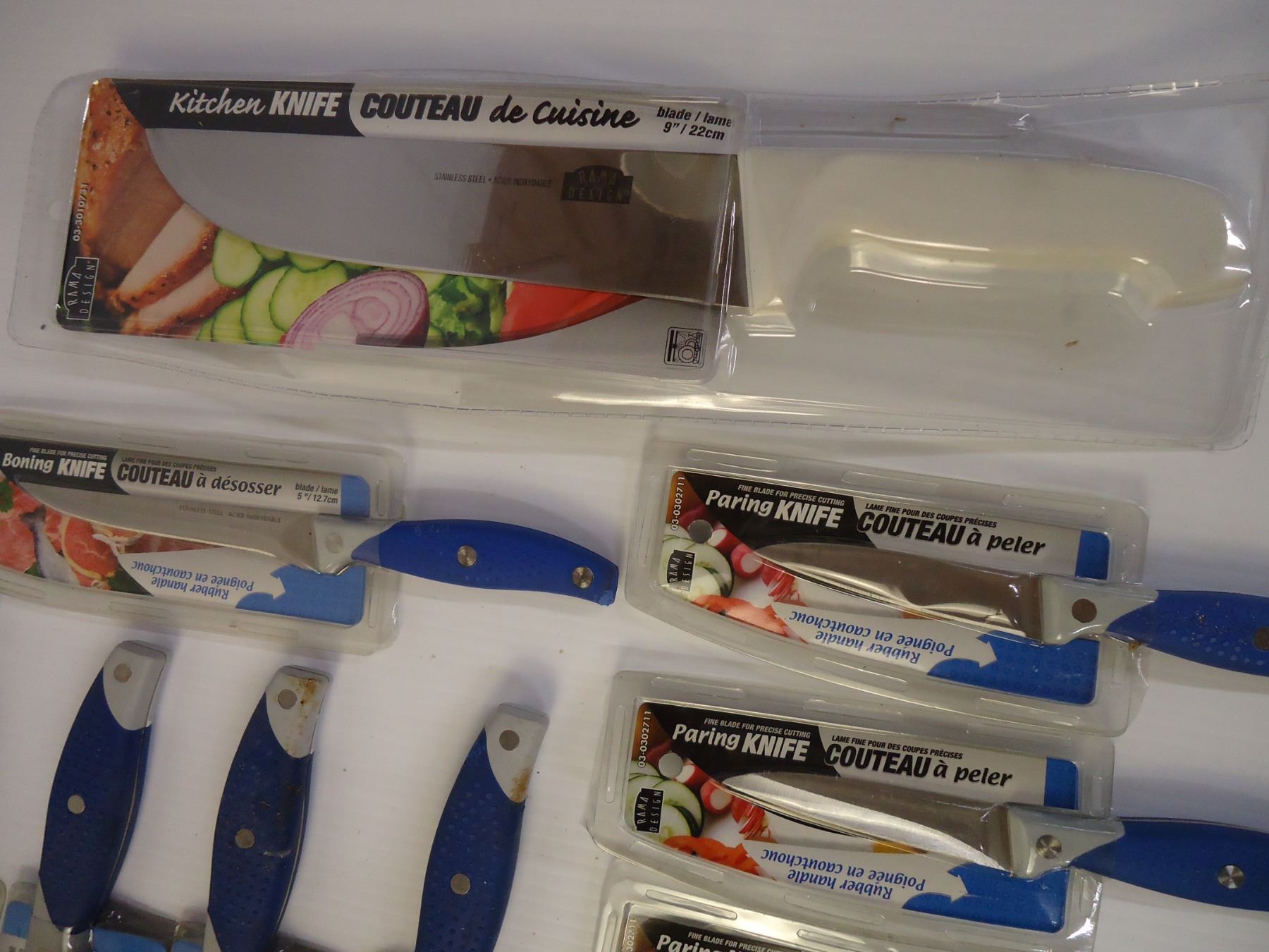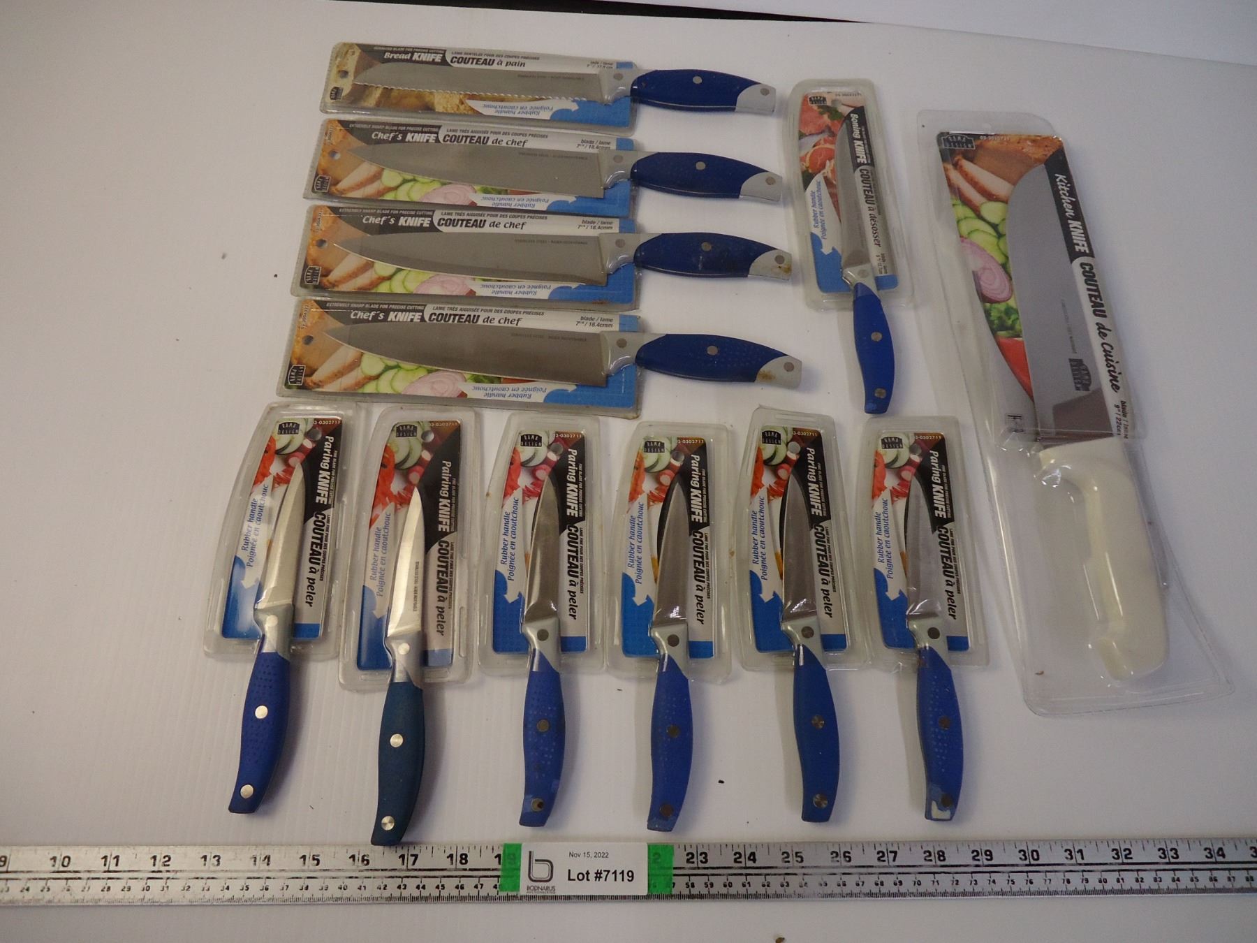 (6) Paring Knives, (3) Chef’s Knife, (1) Bread,(1) Boning,(1) Large Kitchen