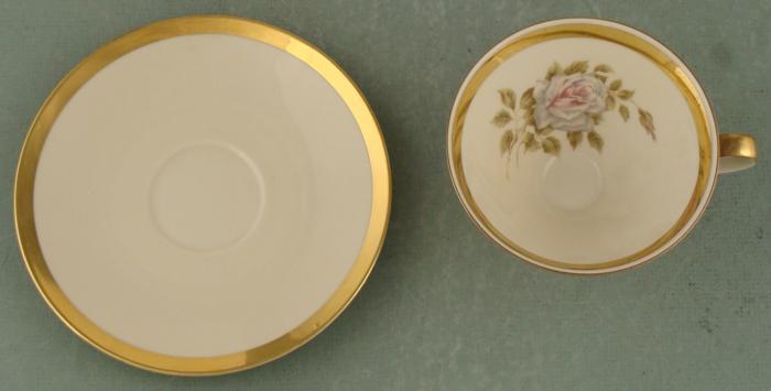 (3) 7 3/4 inch plates (3) 6 1/8" saucers (3) teacups, 4 1/8" x 2 1/2"