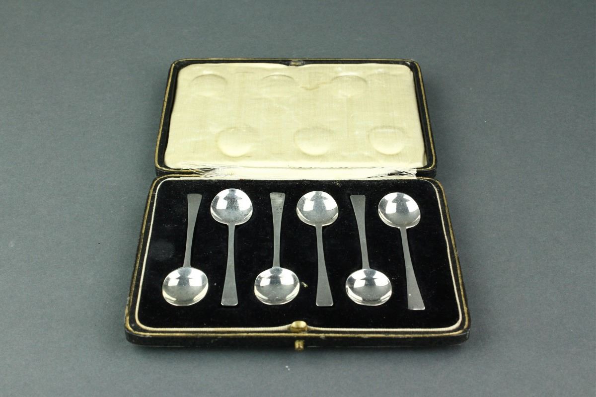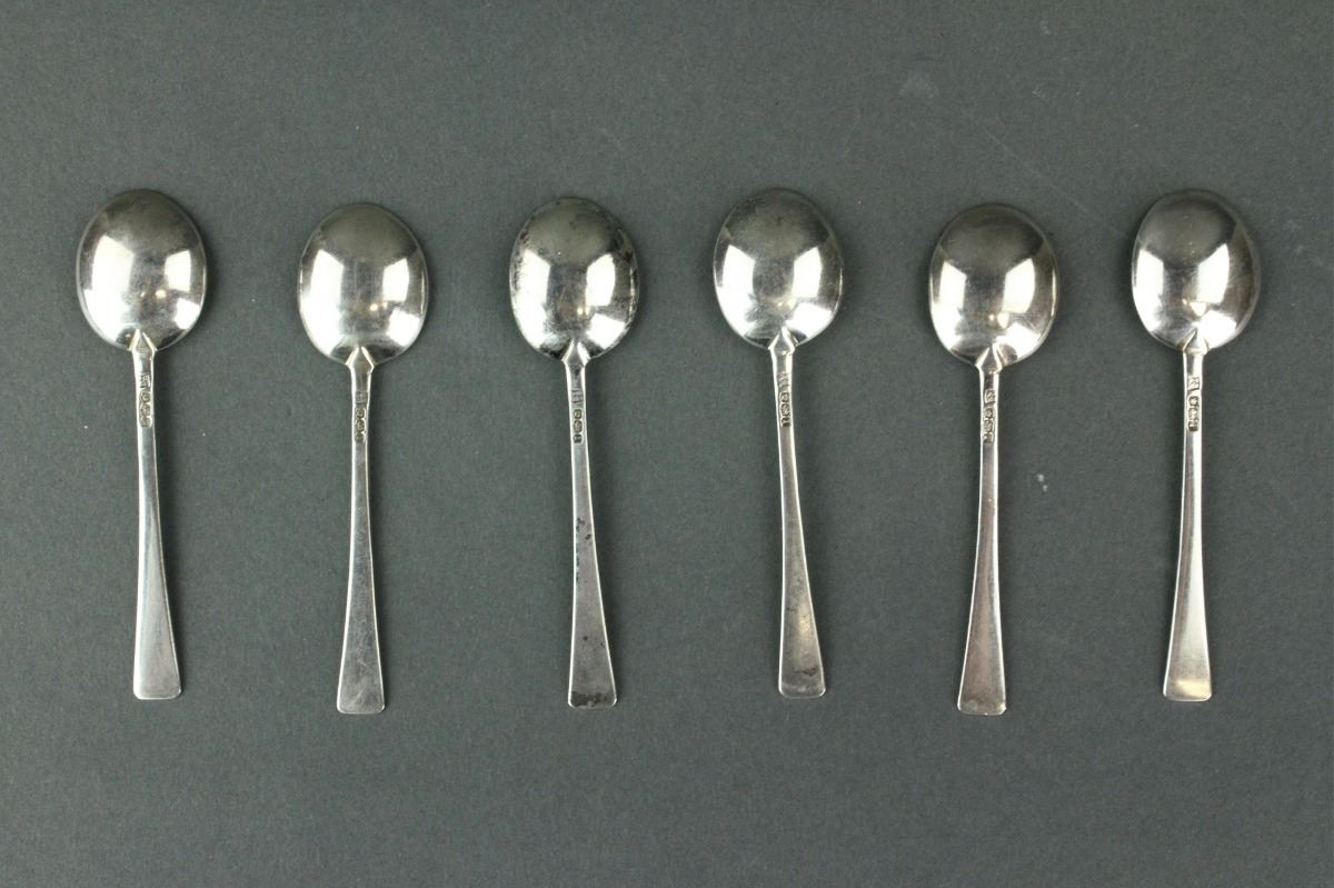 Six pieces of British fine silverware; comprised of six coffee spoons; with T.B&S hallmark of British silver maker on back; L: 14 cm, W: 11 cm, 196 grams