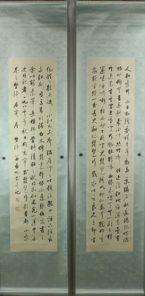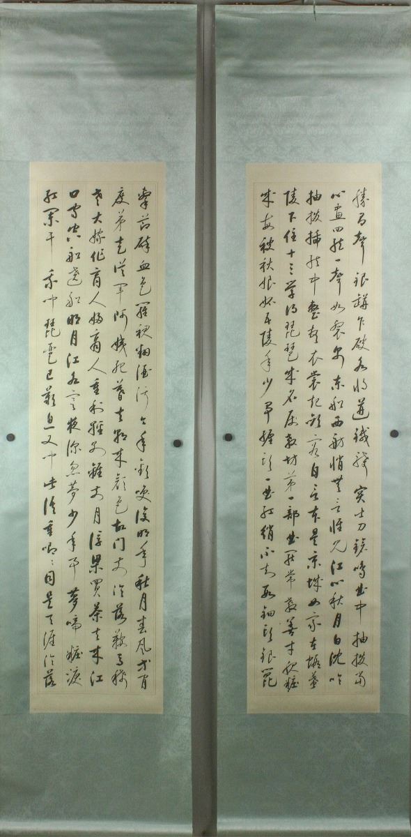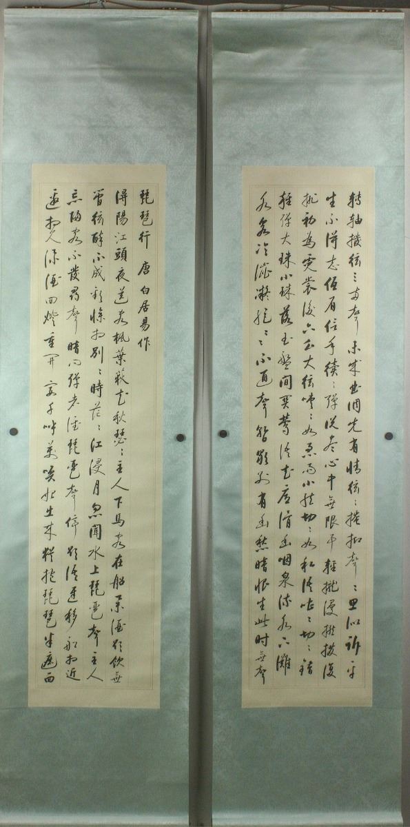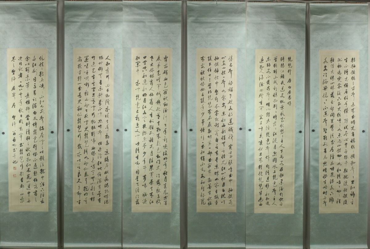 Script calligraphy of "The Pipa Tune" by Bai Juyi; Chinese ink on paper; six hanging scrolls; signed Qi Gong and inscribed with two artist seals; 137.5 cm X 33 cm