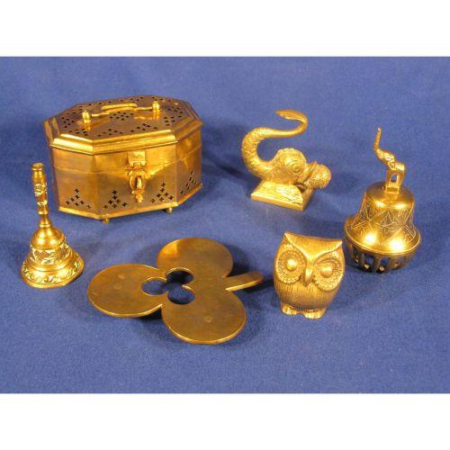 6 Pcs brass items including 3" brass box 6" wide