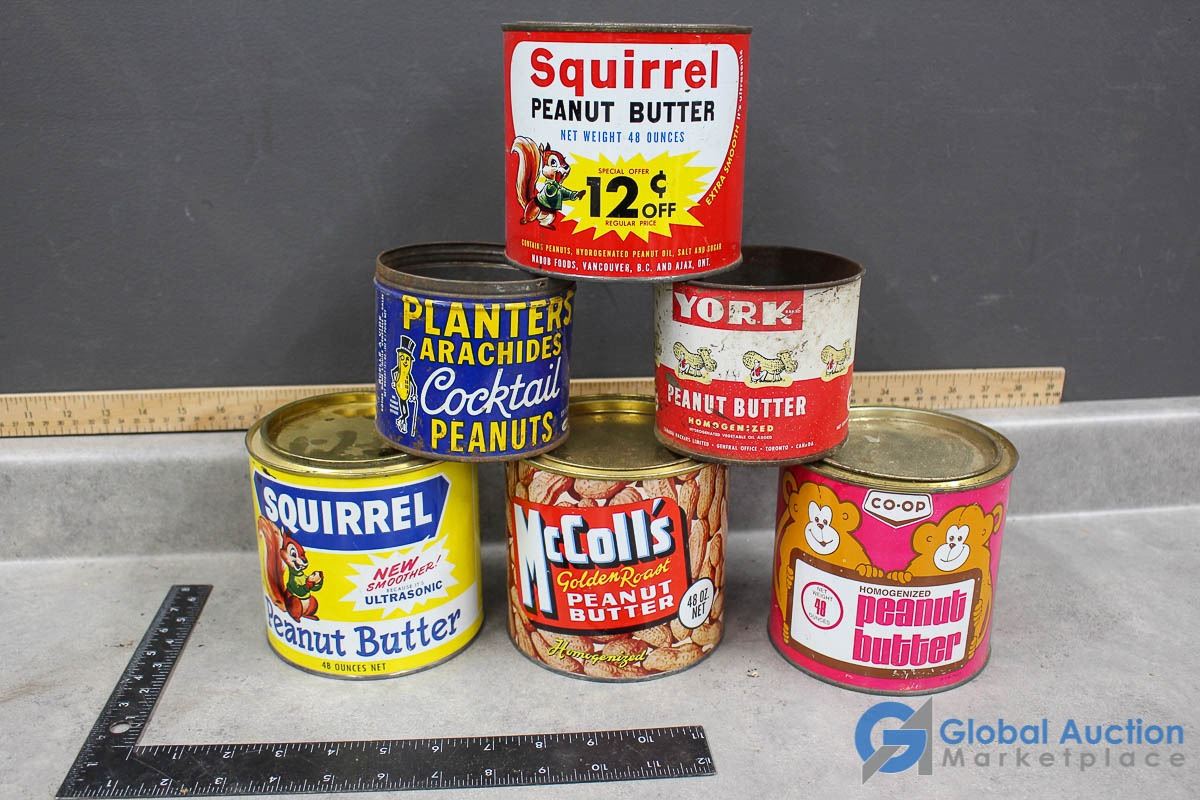 (6) Peanut Tins - Squirrel, Planters, York, COOP