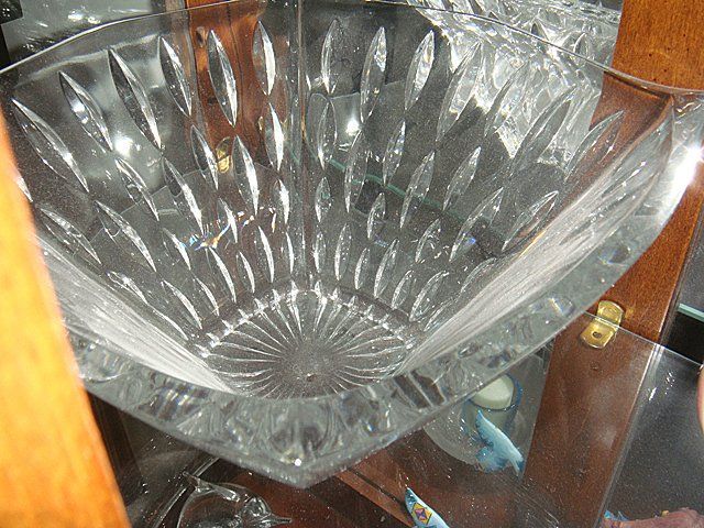 6 estate pieces, including Goebel Hummel Large pig bank with original key, cut glass bowl, pair of snail salt and pepper shakers, small Italy vase, and hand blown glass pig. Pig bank has four-leaf clover decoration.