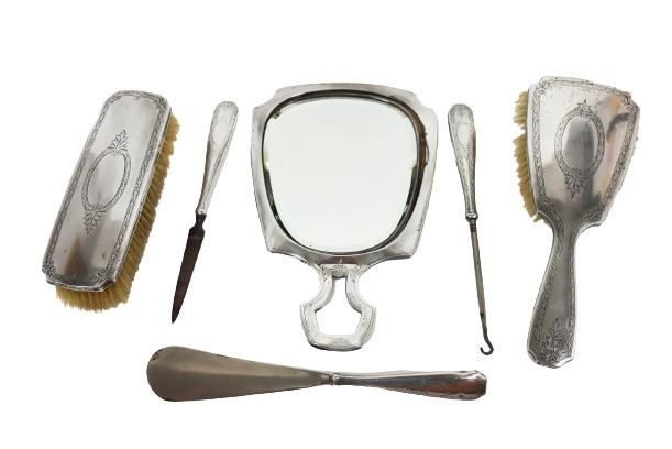 Total of (6) pieces of sterling silver accessories. Mark details shown in photos provided. All approximately under 8 in.