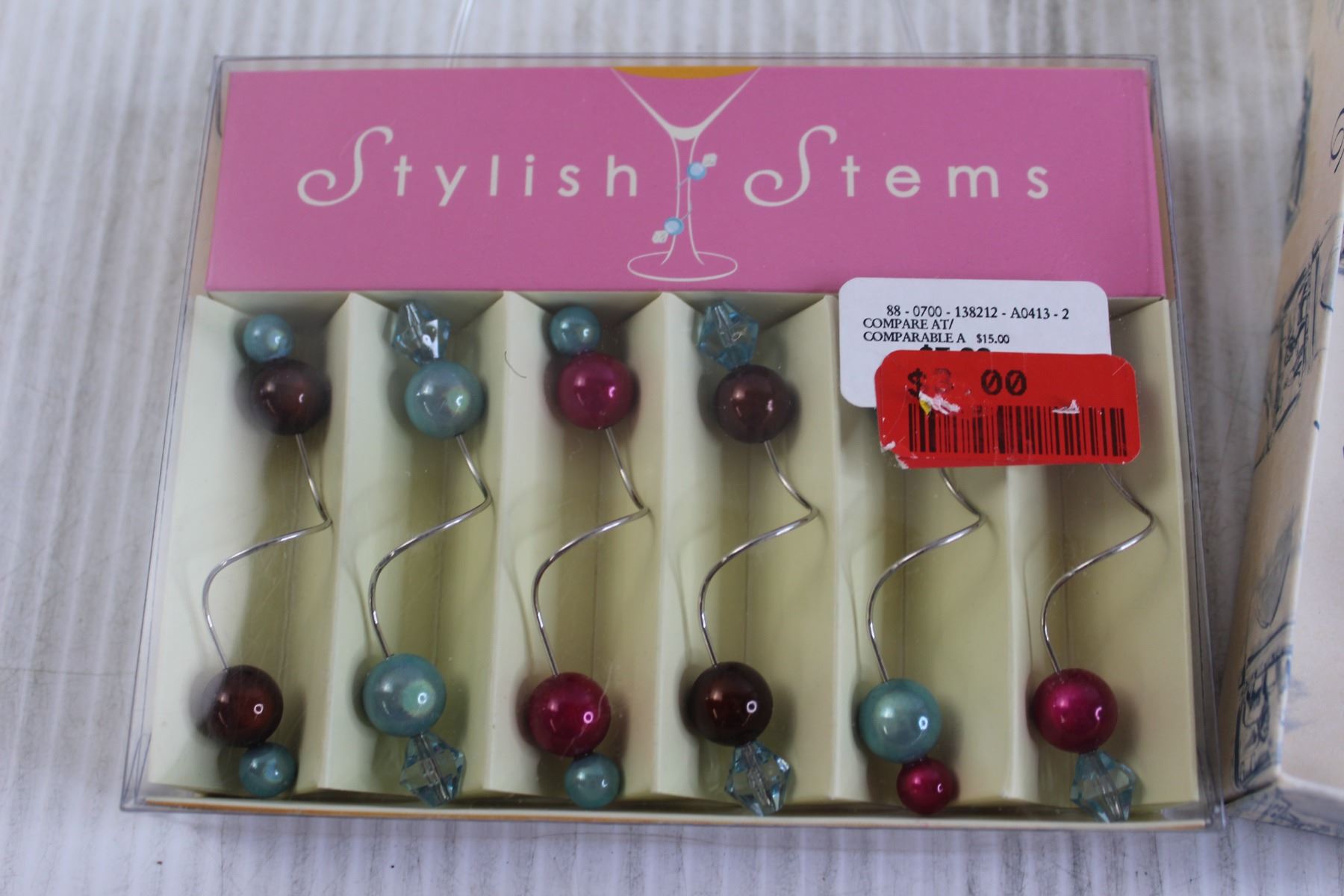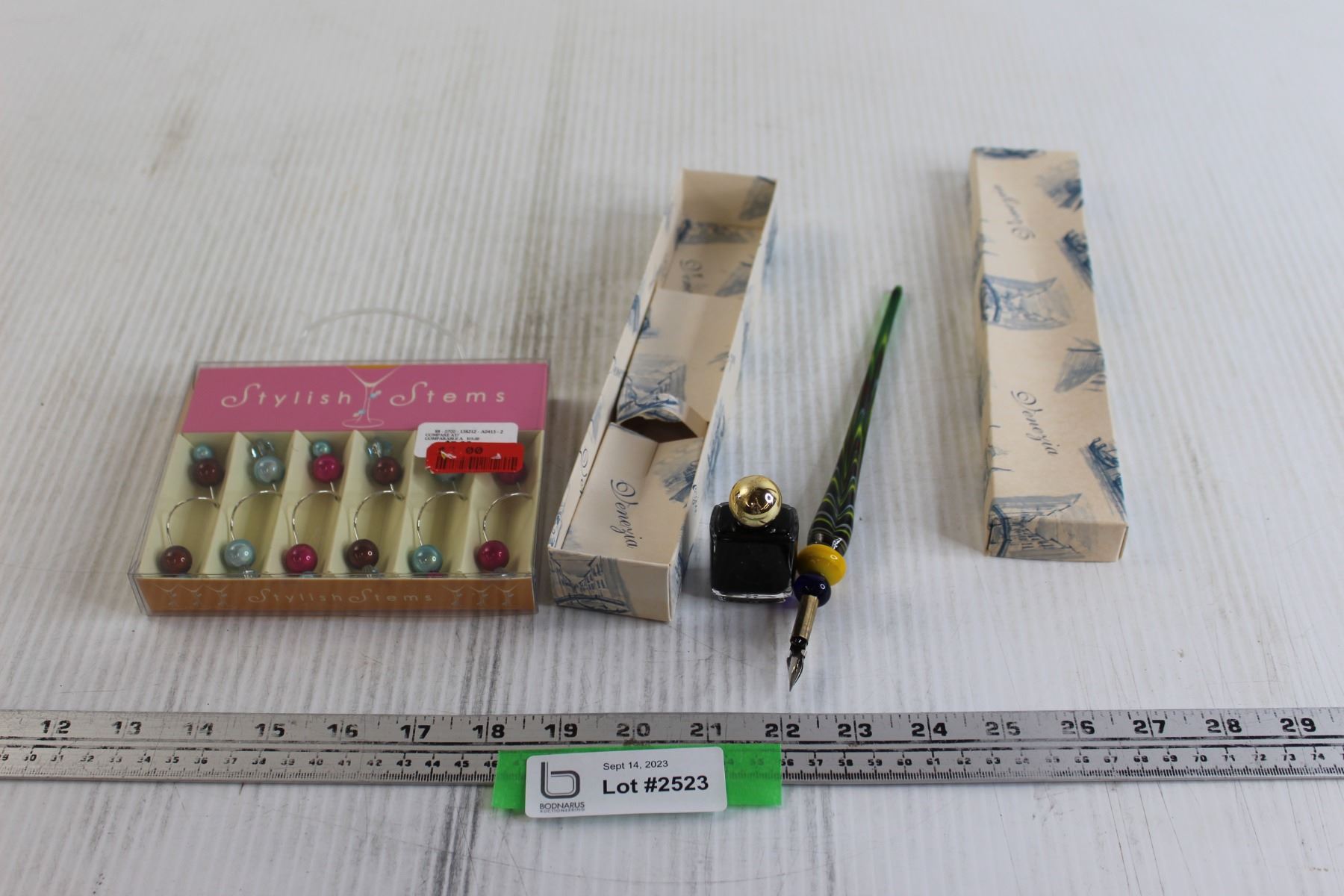 6-Piece Stylish Stems Wine Glass Identifiers - NIB, Pen and Ink