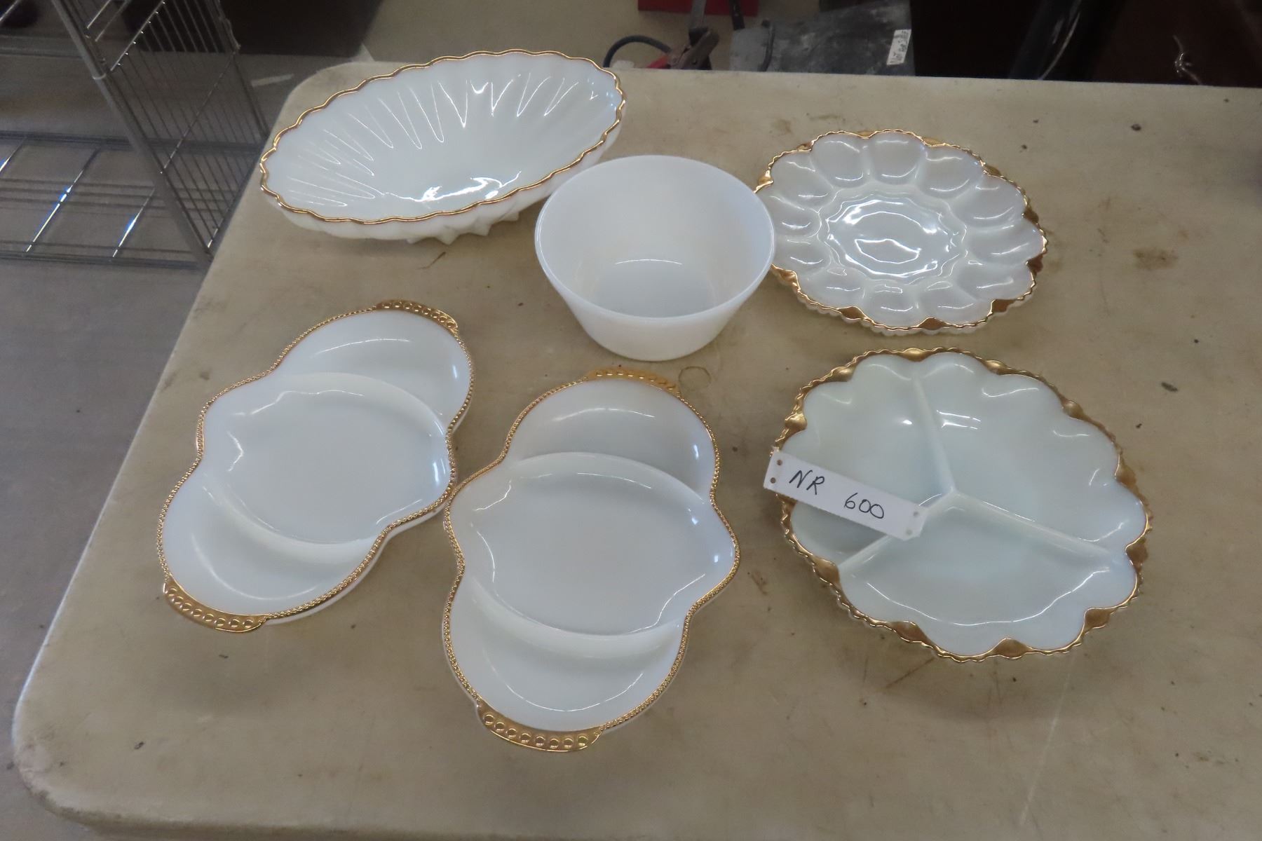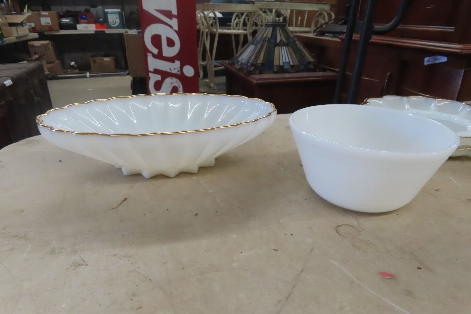 6 Pieces Milk Glass Serving ware Includes 2 Pieces Fire King