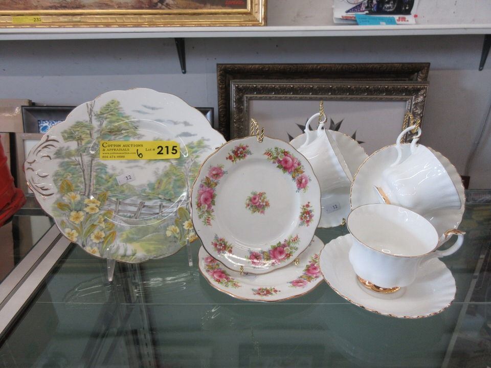 Salisbury dessert tray, 2 Royal Albert side plates & 3 Royal Albert teacup & saucers