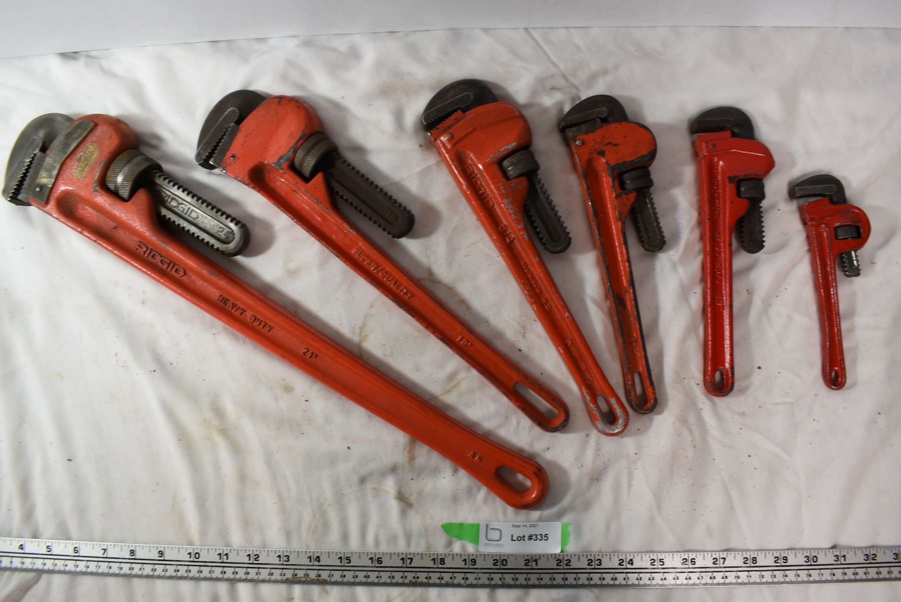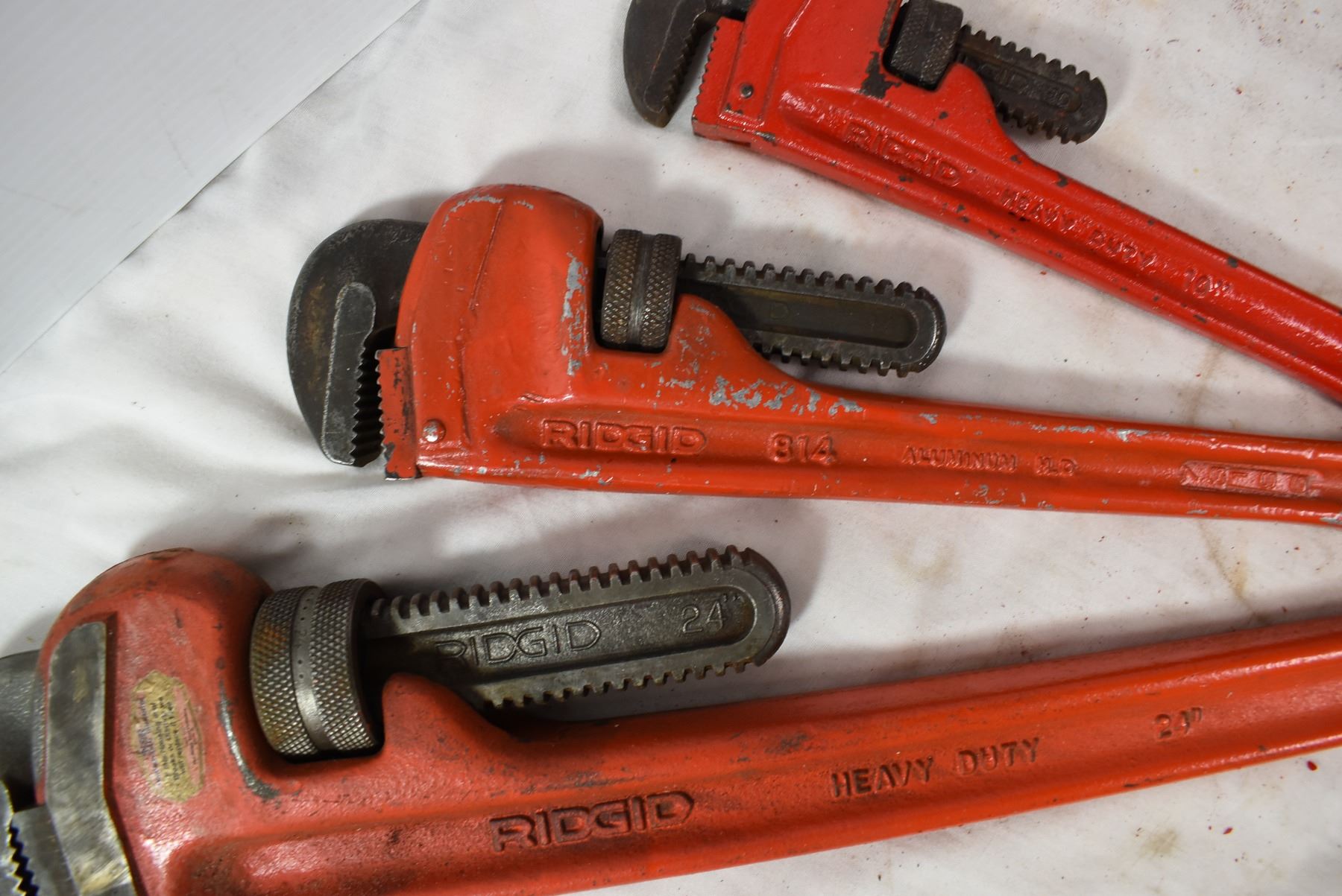 6 Pipe wrench set. 3 are Ridged brand.