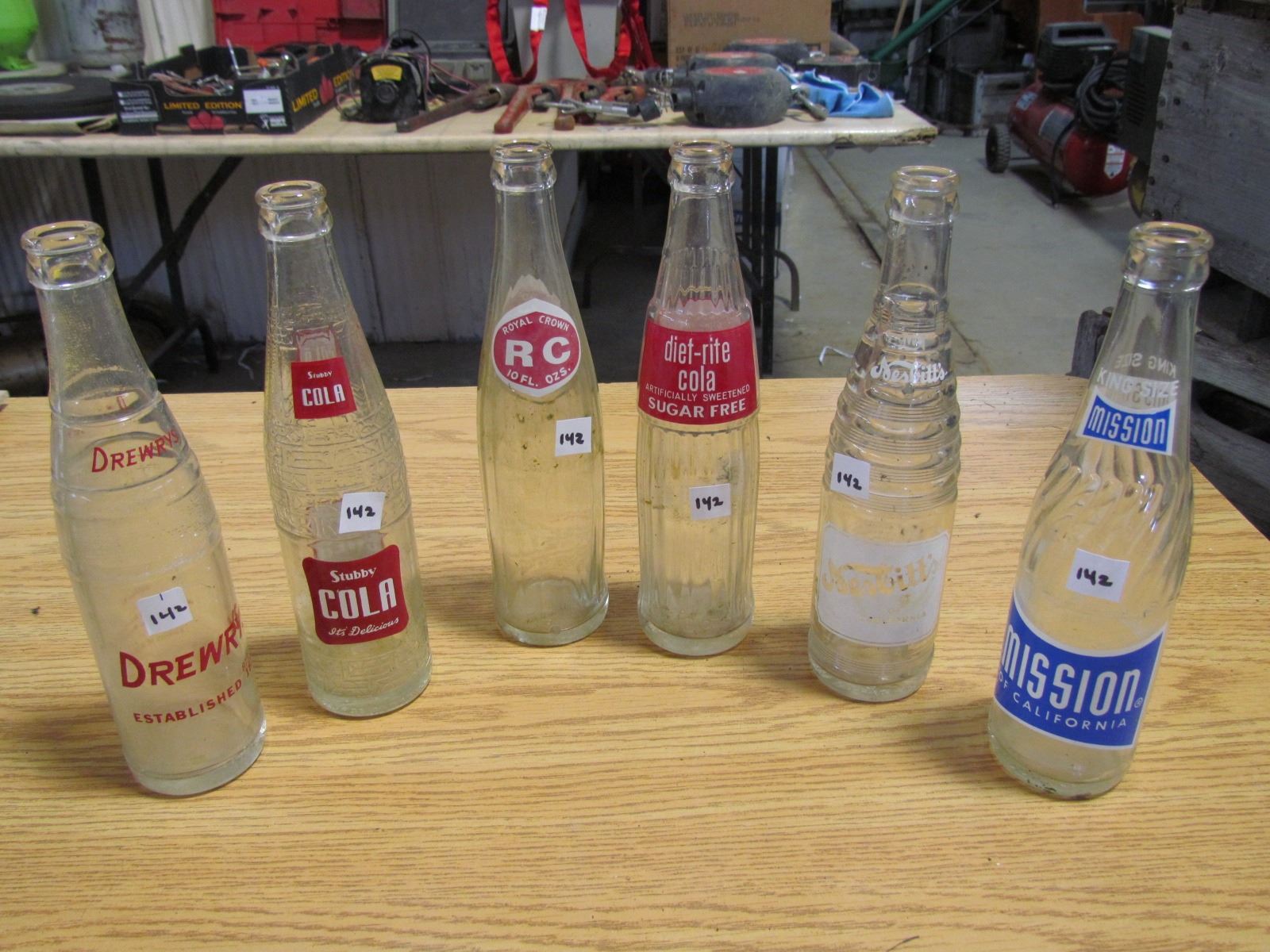 6 Pop bottles Drewery, Mission, Stubby, Nesbett, Royal C rown, diet rite cola
