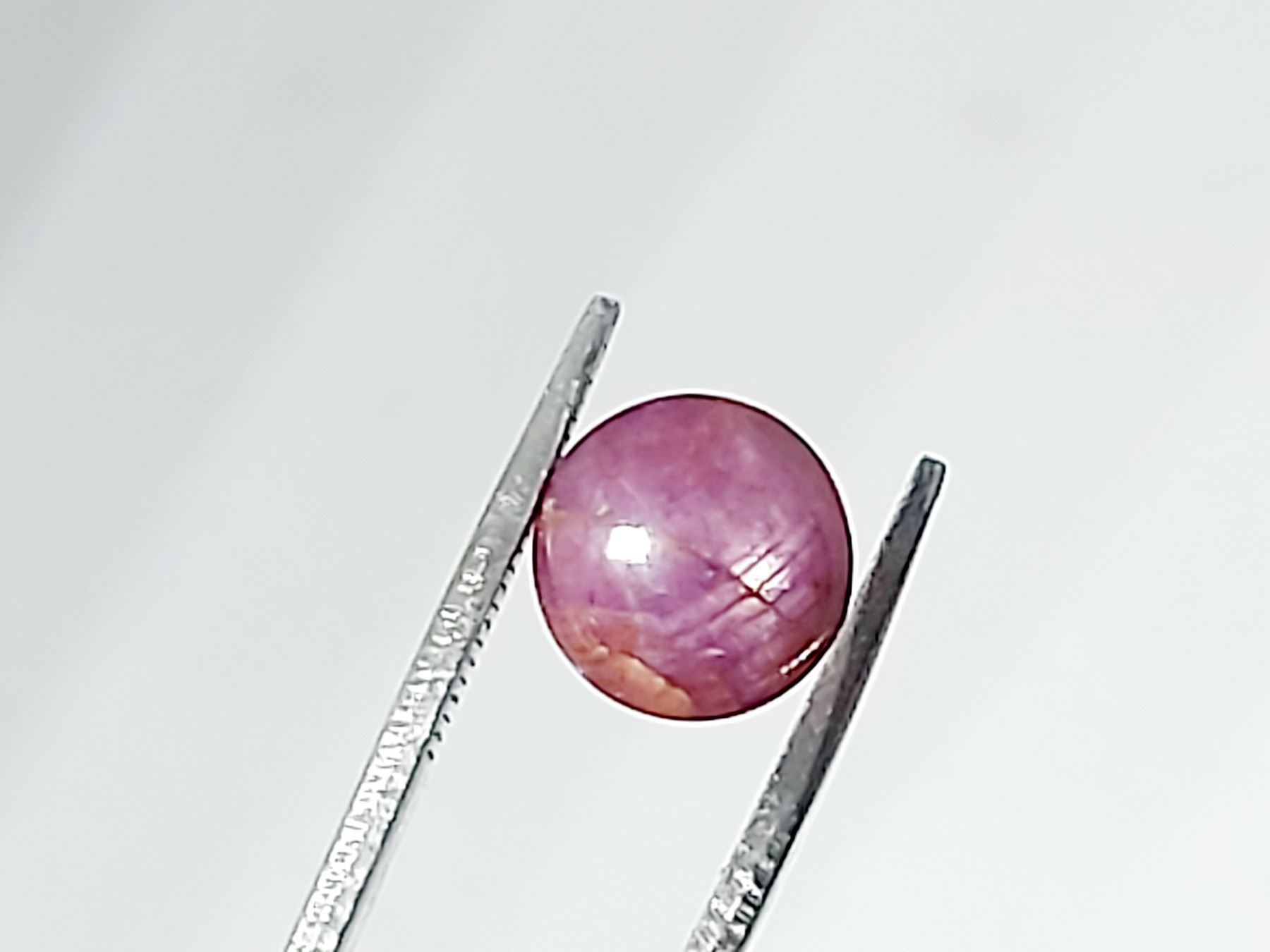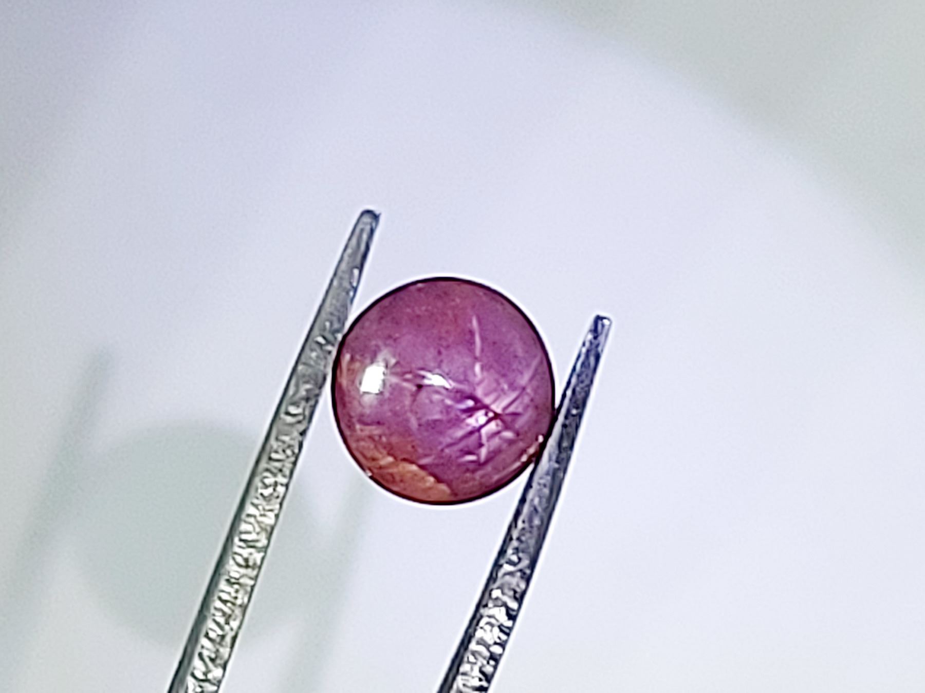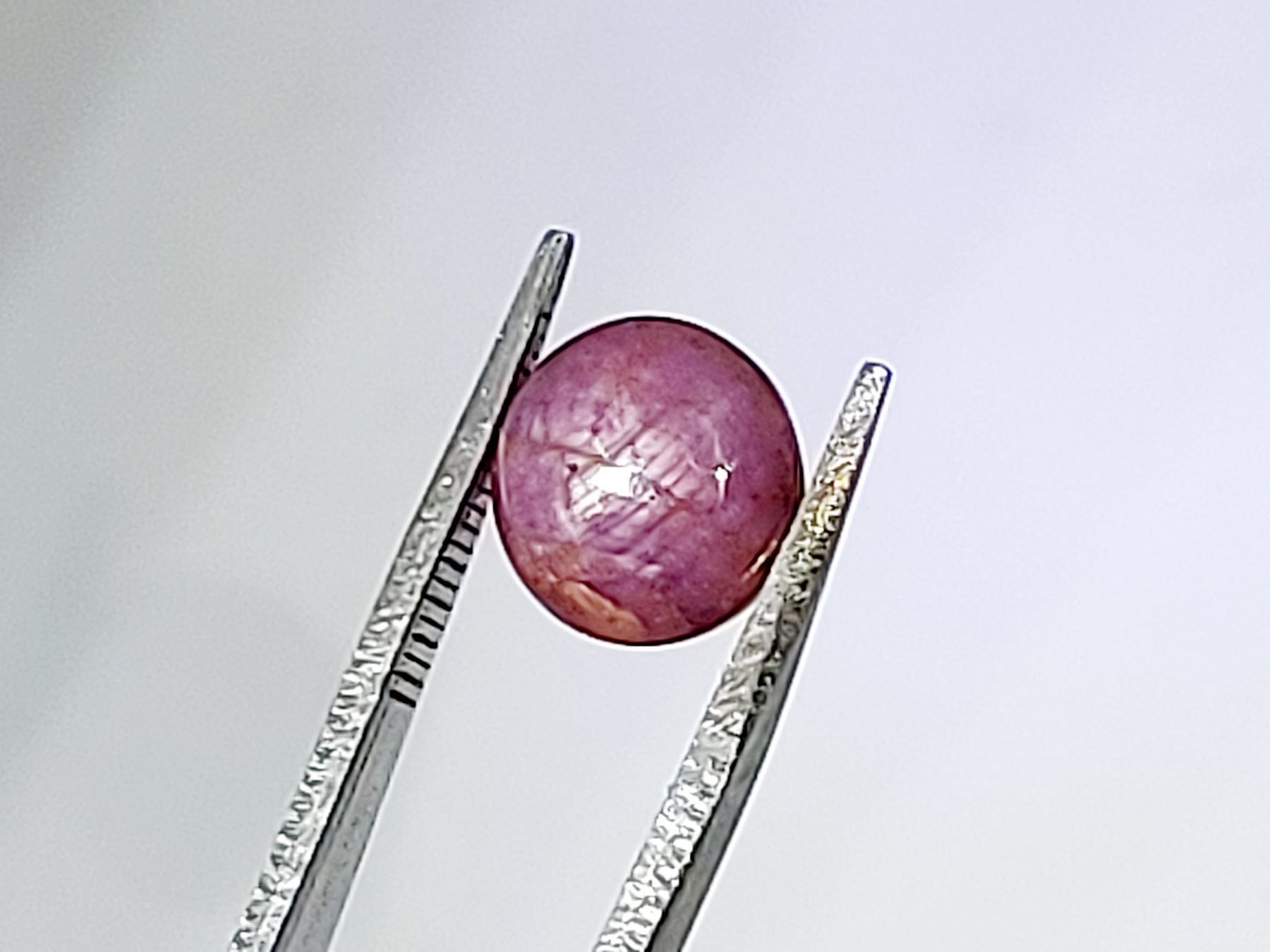 4.61 ct. 8.70 x 5.27 mm Colour: Purplish - Red , Shape: Round Cabochon , Luster: Exceptional , Origin: Mozambique Untreated