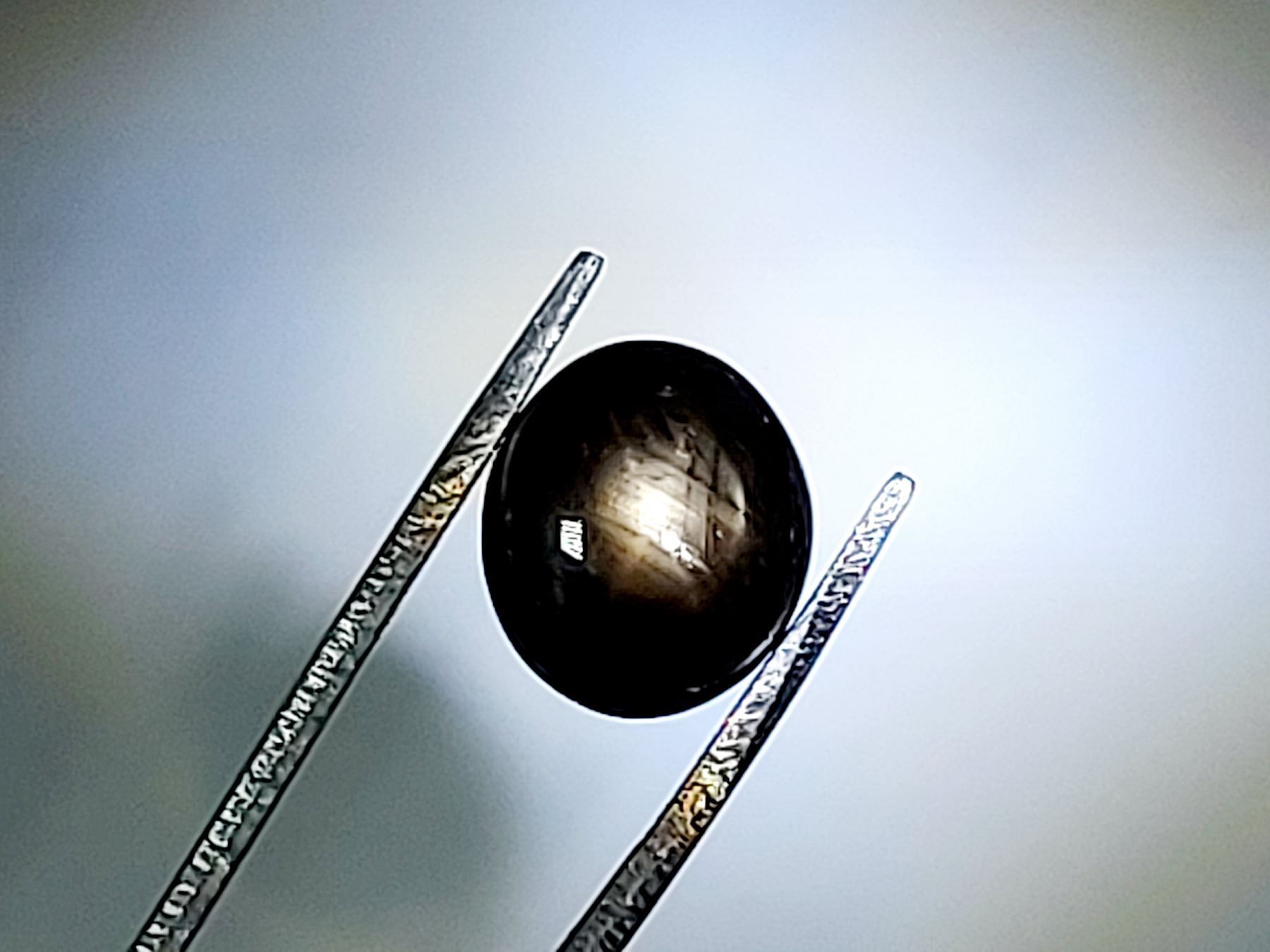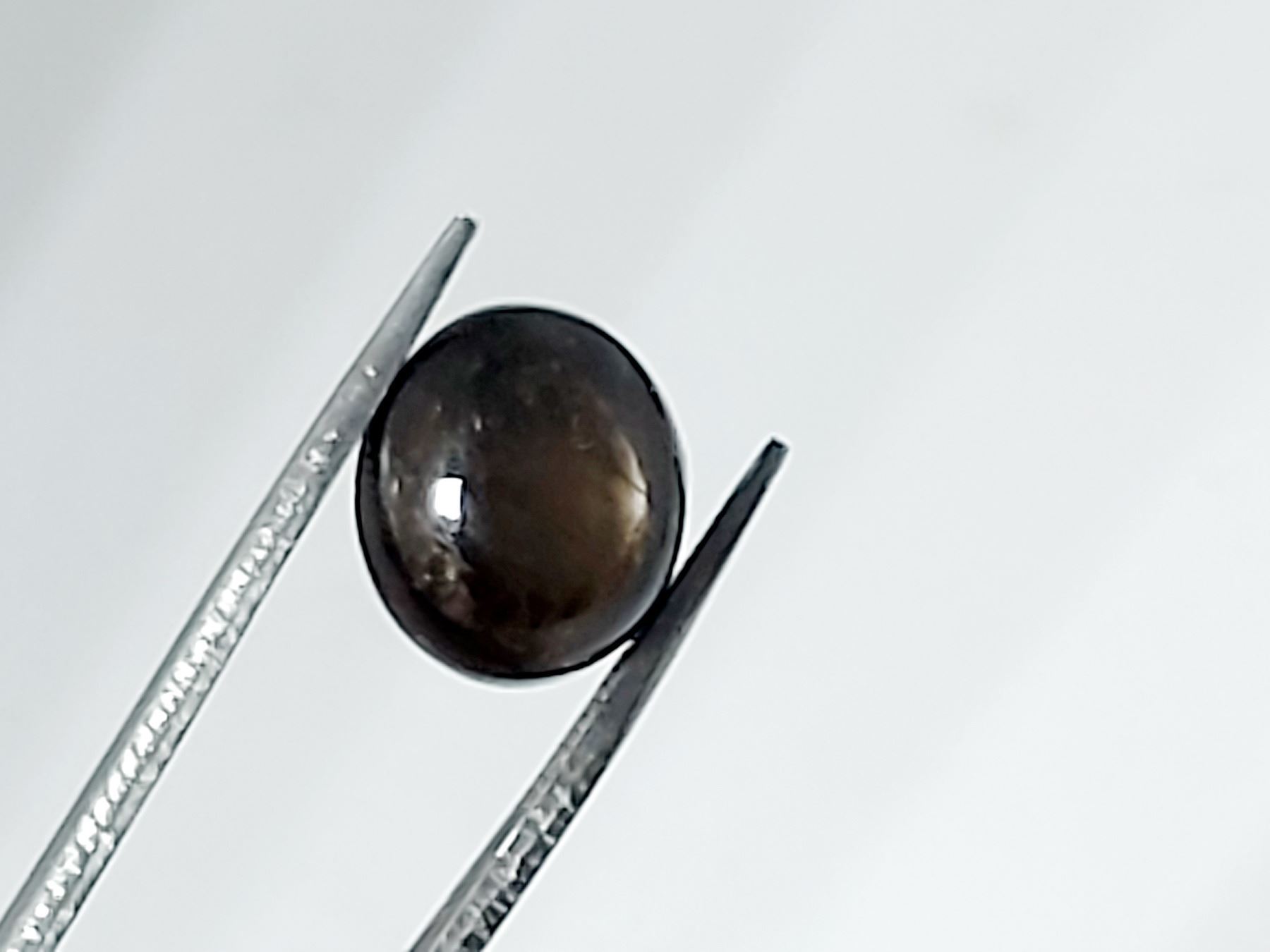9.40 ct. 11.44 x 9.89 x 7.12 mm Colour: Blackish - Green , Shape: Oval Cabochon , Luster: Exceptional , Origin: Mozambique Untreated