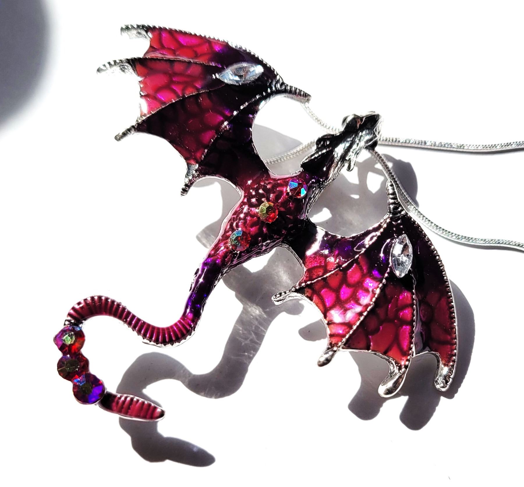 DRAGON BROOCH/PENDANT ON 20" SNAKE CHAIN. JEWELERY