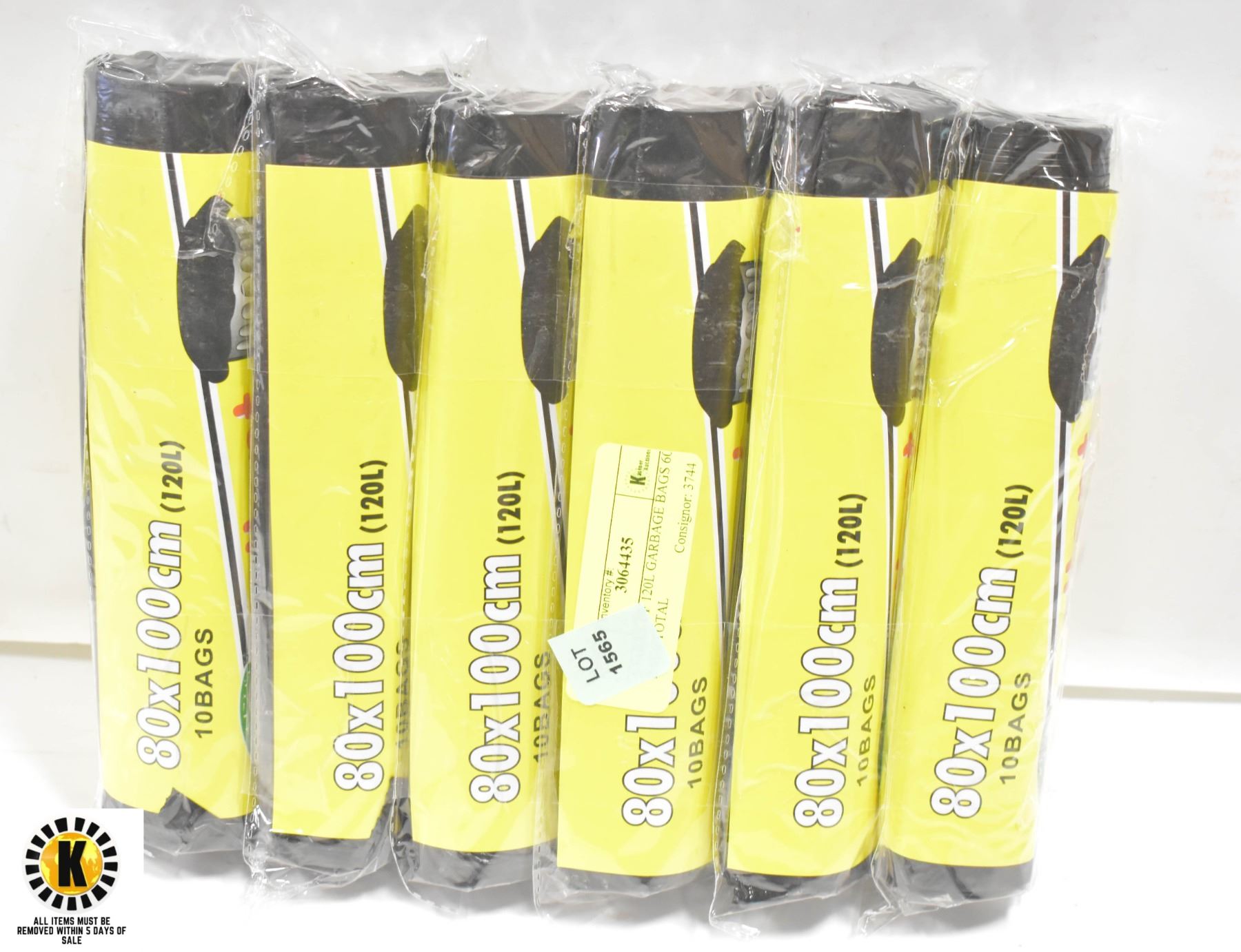 6 ROLLS OF 120L GARBAGE BAGS 60 BAGS TOTAL