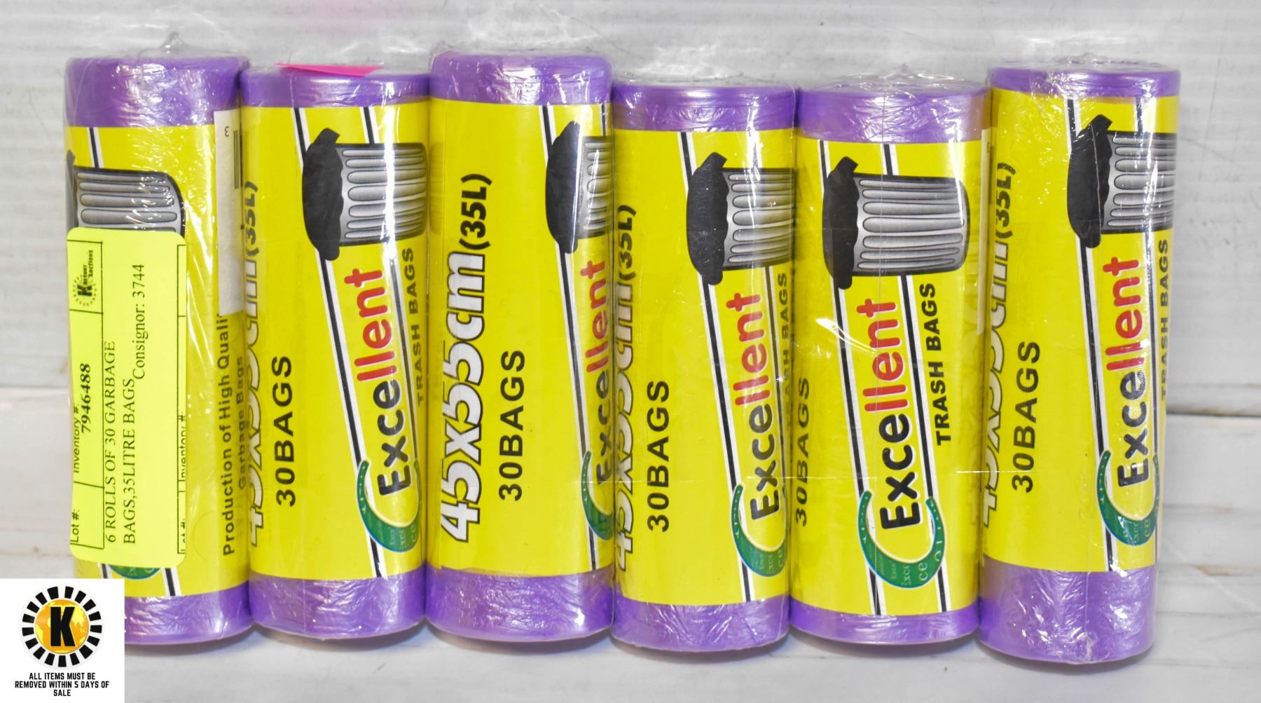 6 ROLLS OF 30 GARBAGE BAGS,35LITRE BAGS