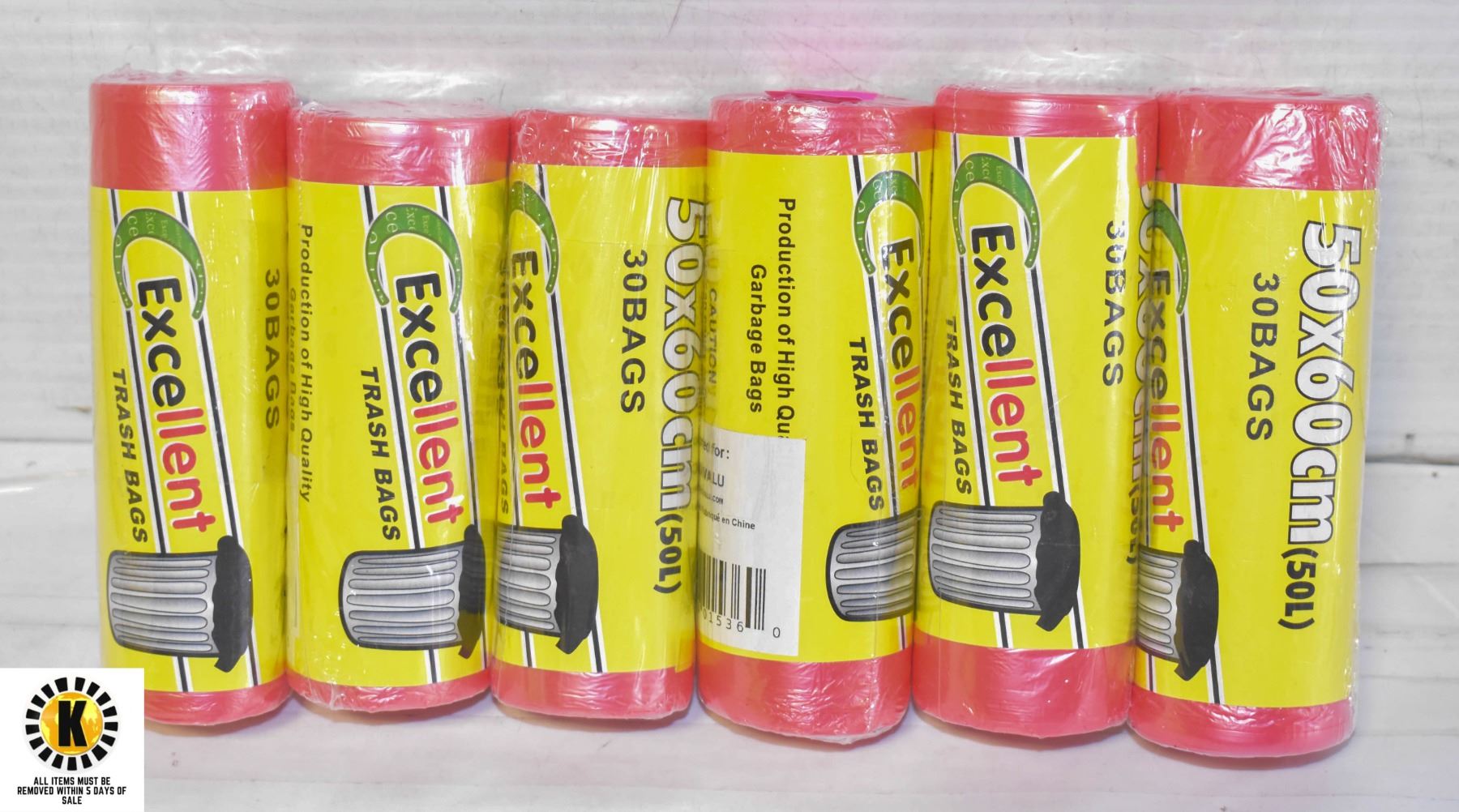 6 ROLLS OF 30 GARBAGE BAGS,50 LITRE BAGS