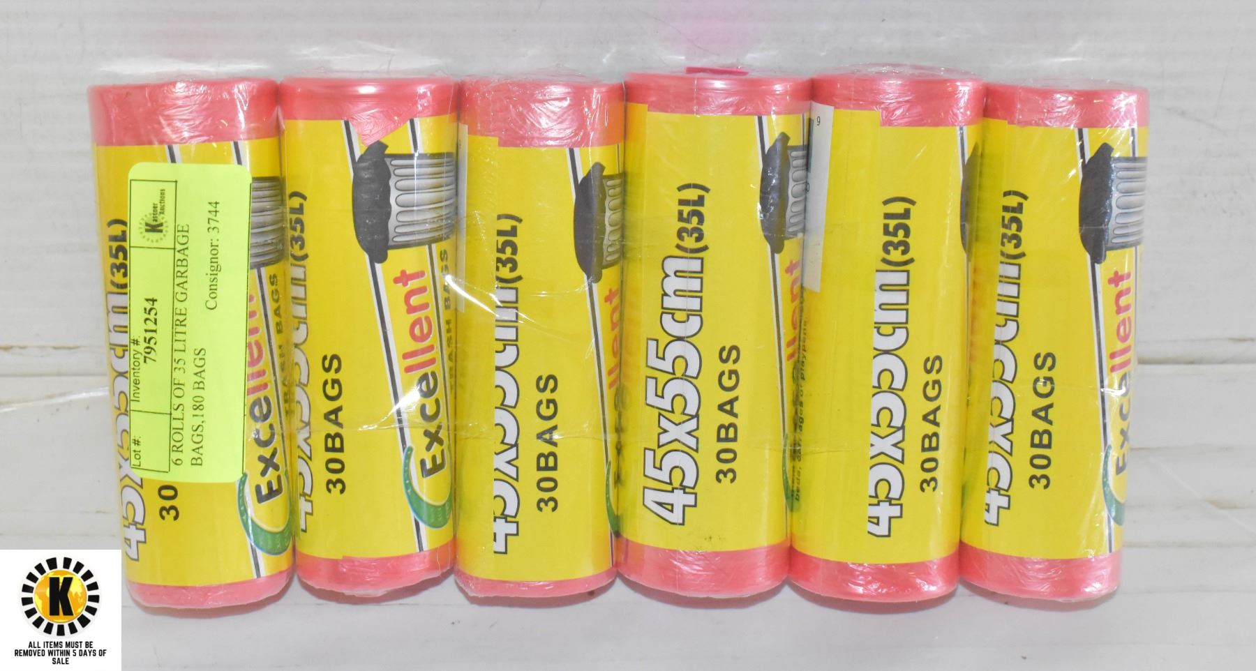 6 ROLLS OF 35 LITRE GARBAGE BAGS,180 BAGS