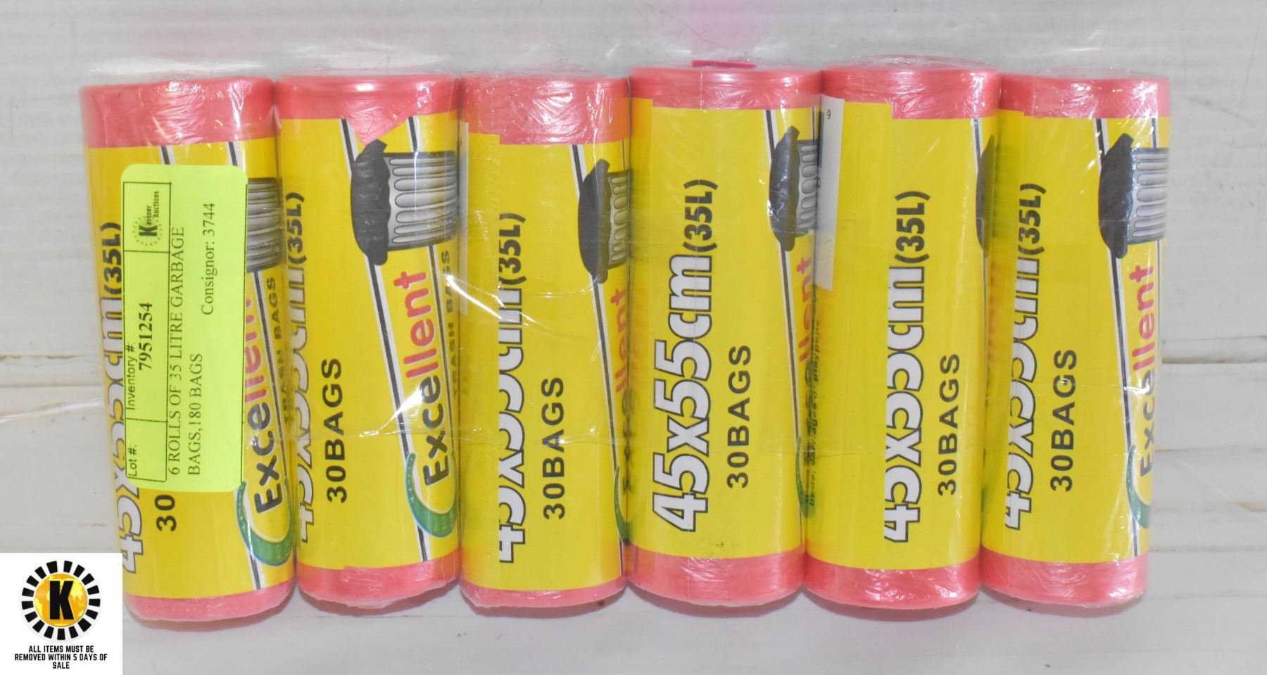 6 ROLLS OF 35 LITRE GARBAGE BAGS,180 BAGS