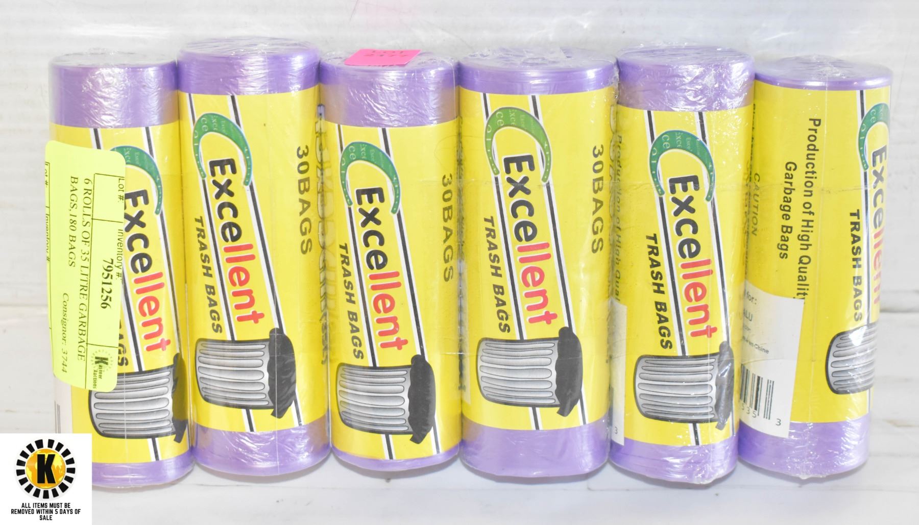 6 ROLLS OF 35 LITRE GARBAGE BAGS,180 BAGS
