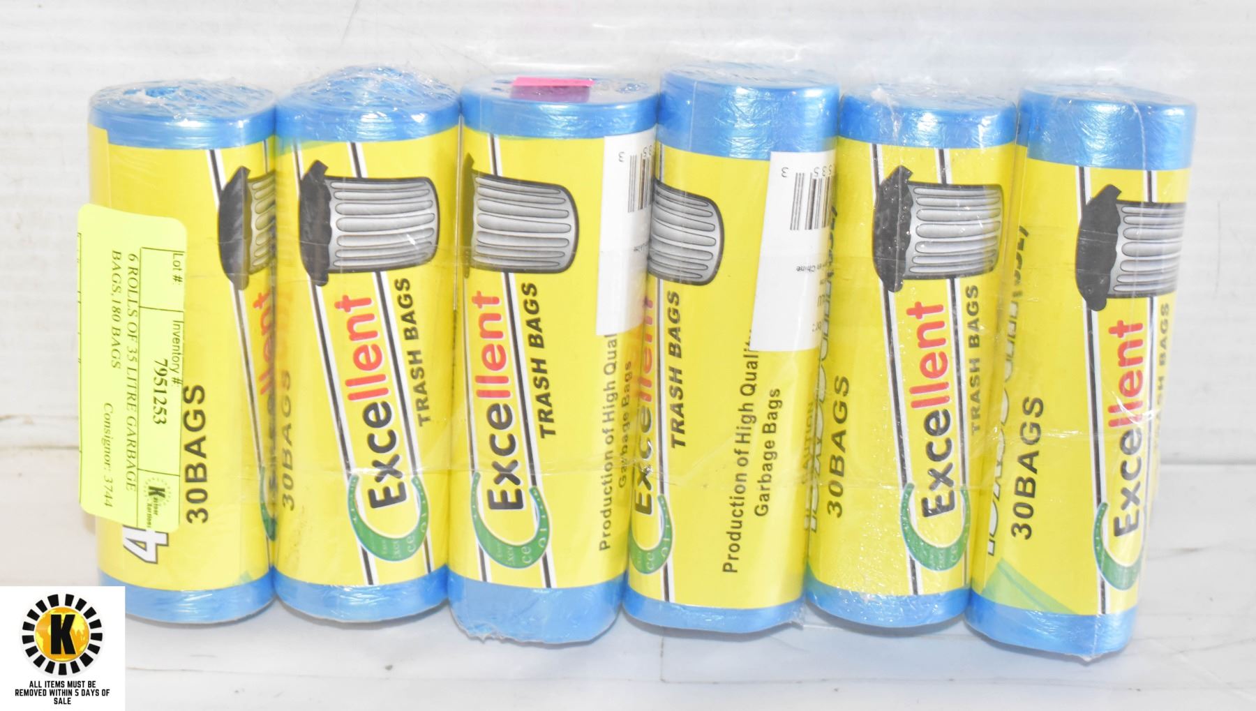 6 ROLLS OF 35 LITRE GARBAGE BAGS,180 BAGS