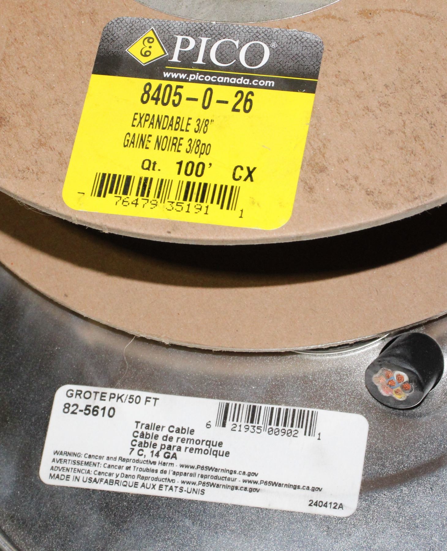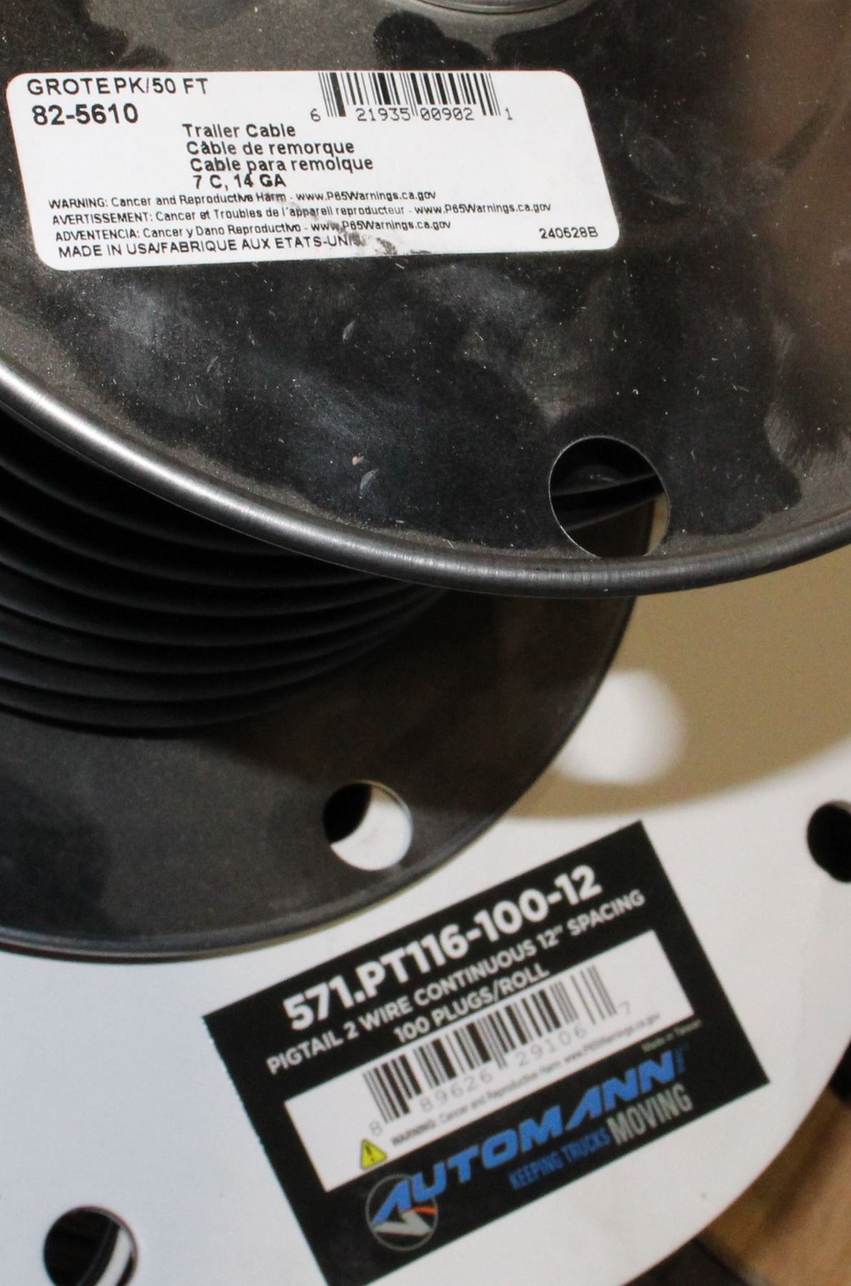 14GA TRAILER CABLE, PIGTAIL 2 WIRE CONTINUOUS 12" SPACING, AND OTHERS