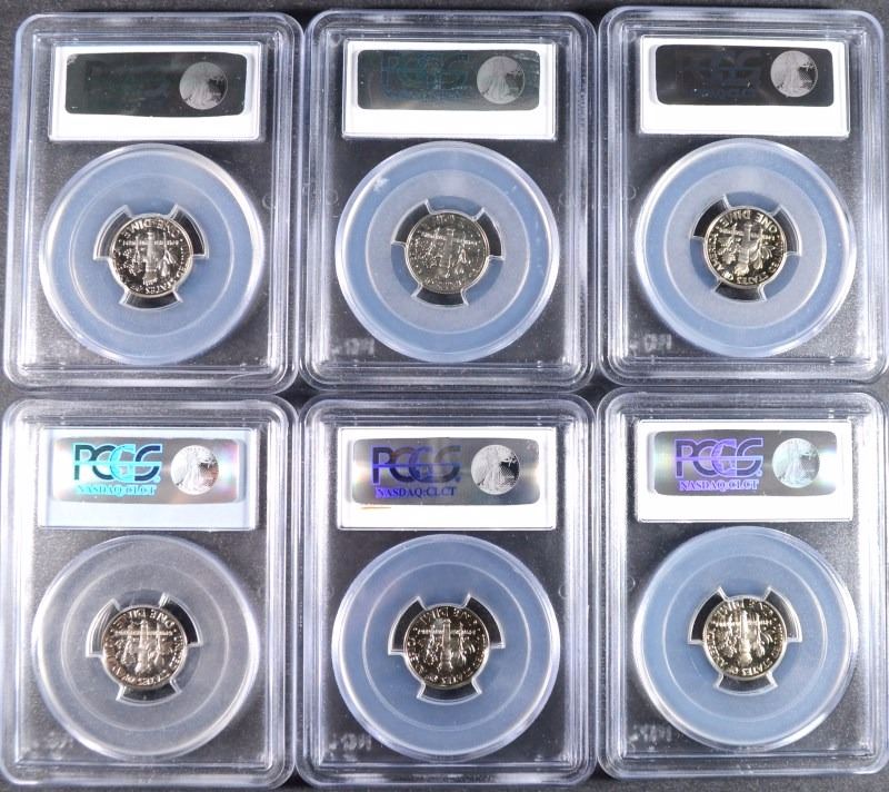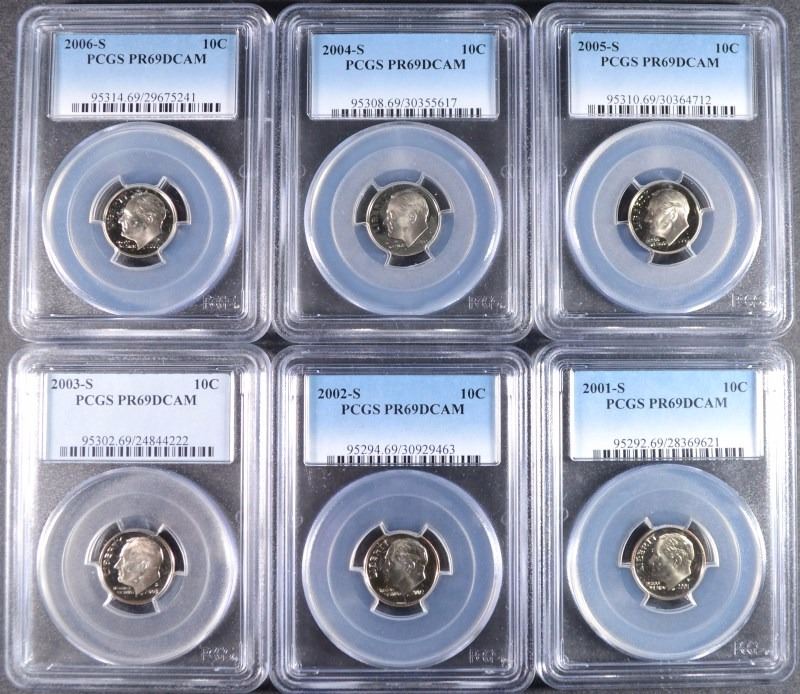 (6) ROOSEVELT DIMES ALL PCGS PR-69 DCAM 01-S, 02-S, 03-S, 04-S, 05-S, 06-S